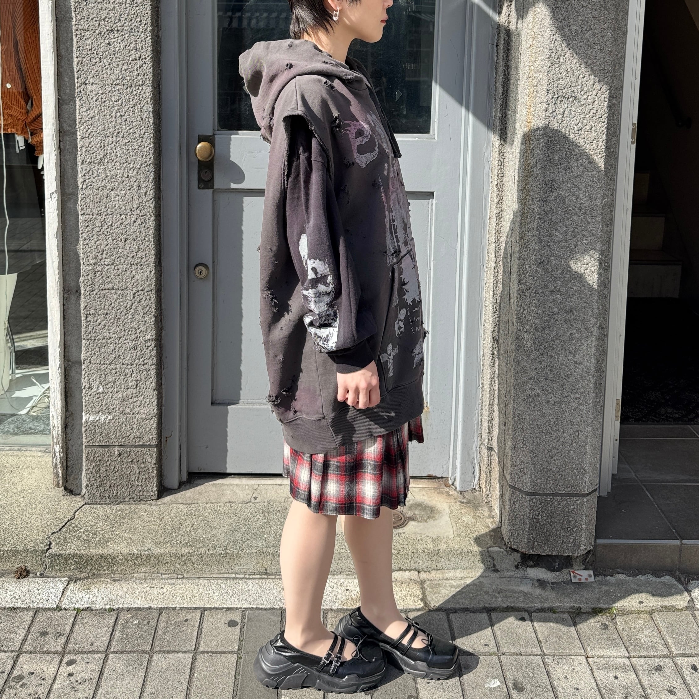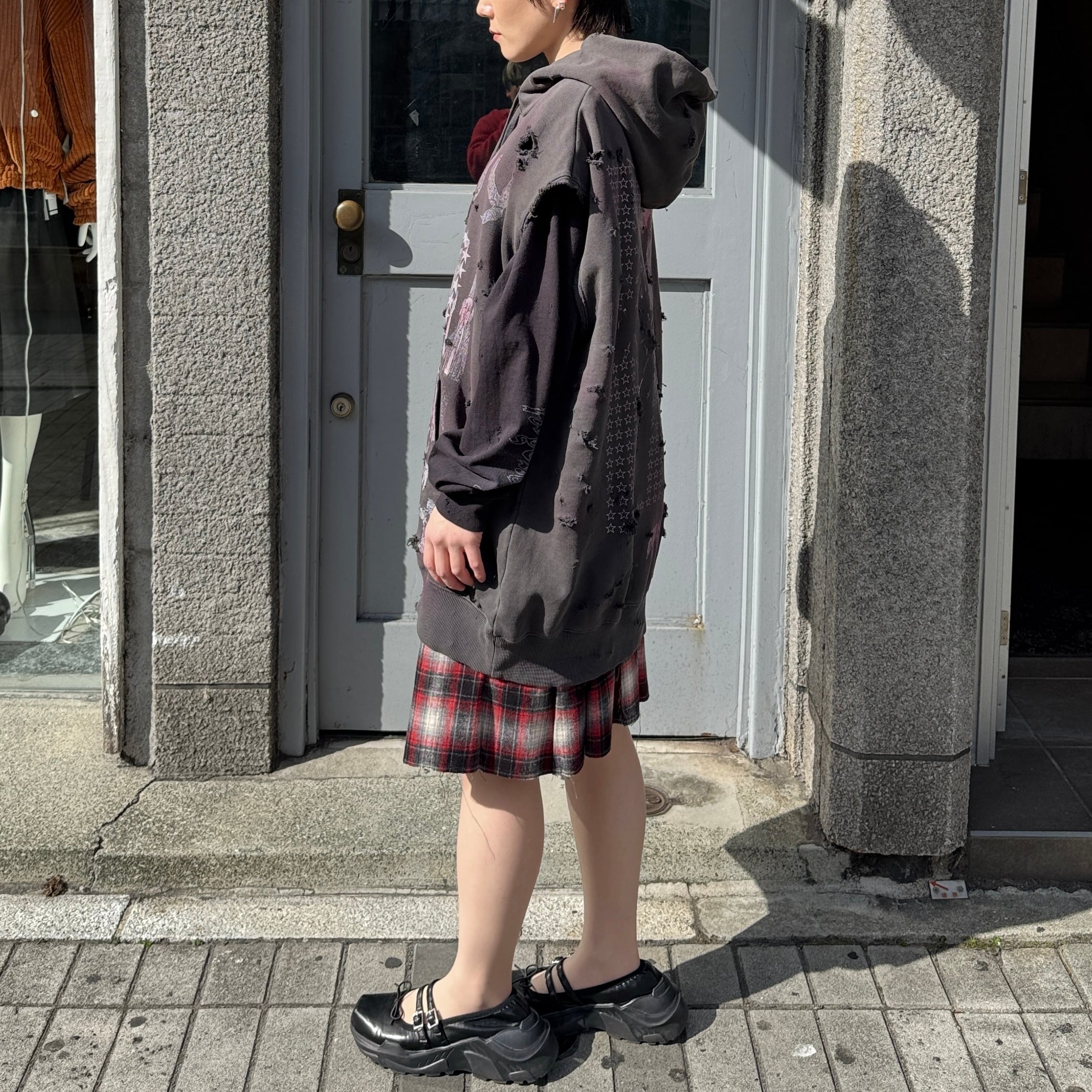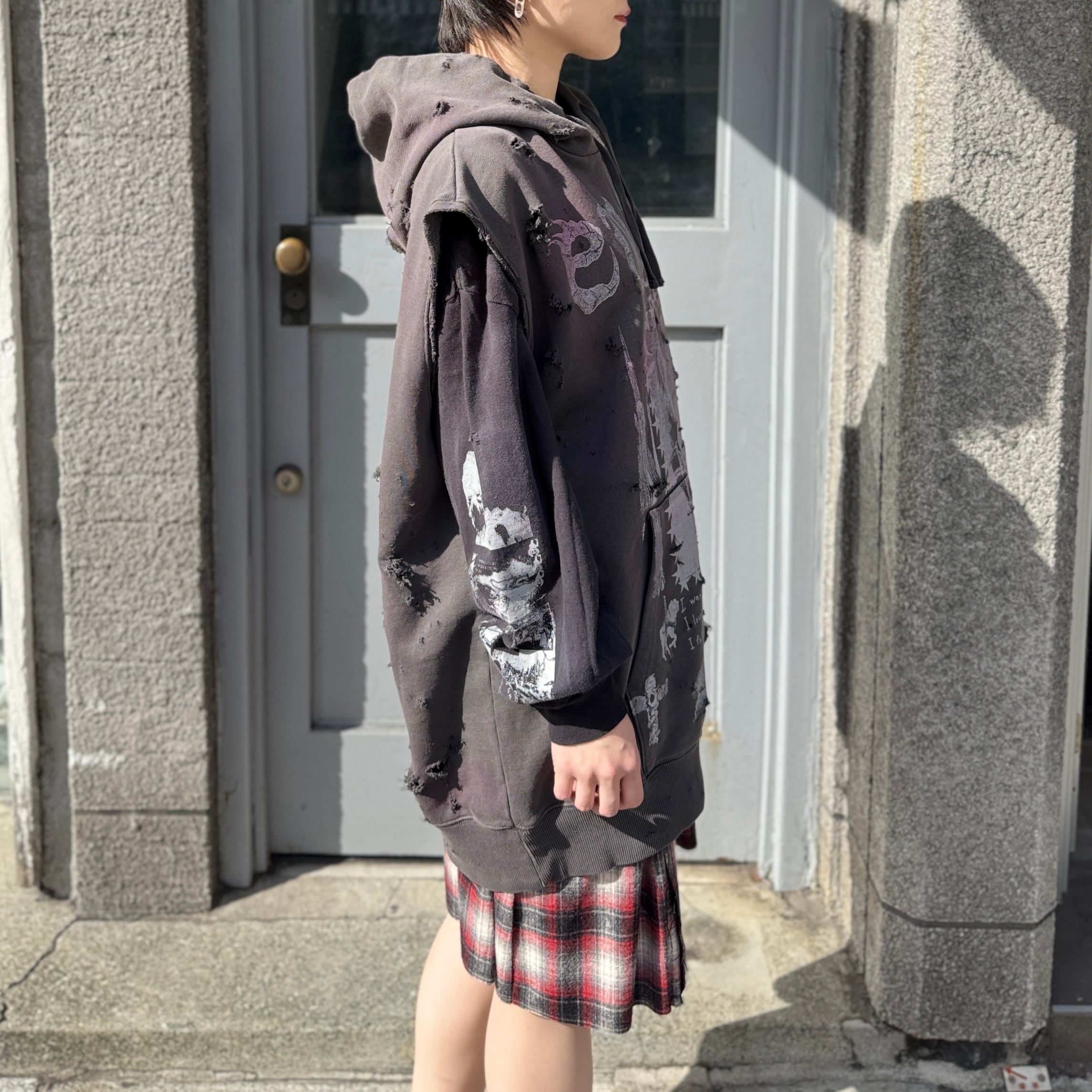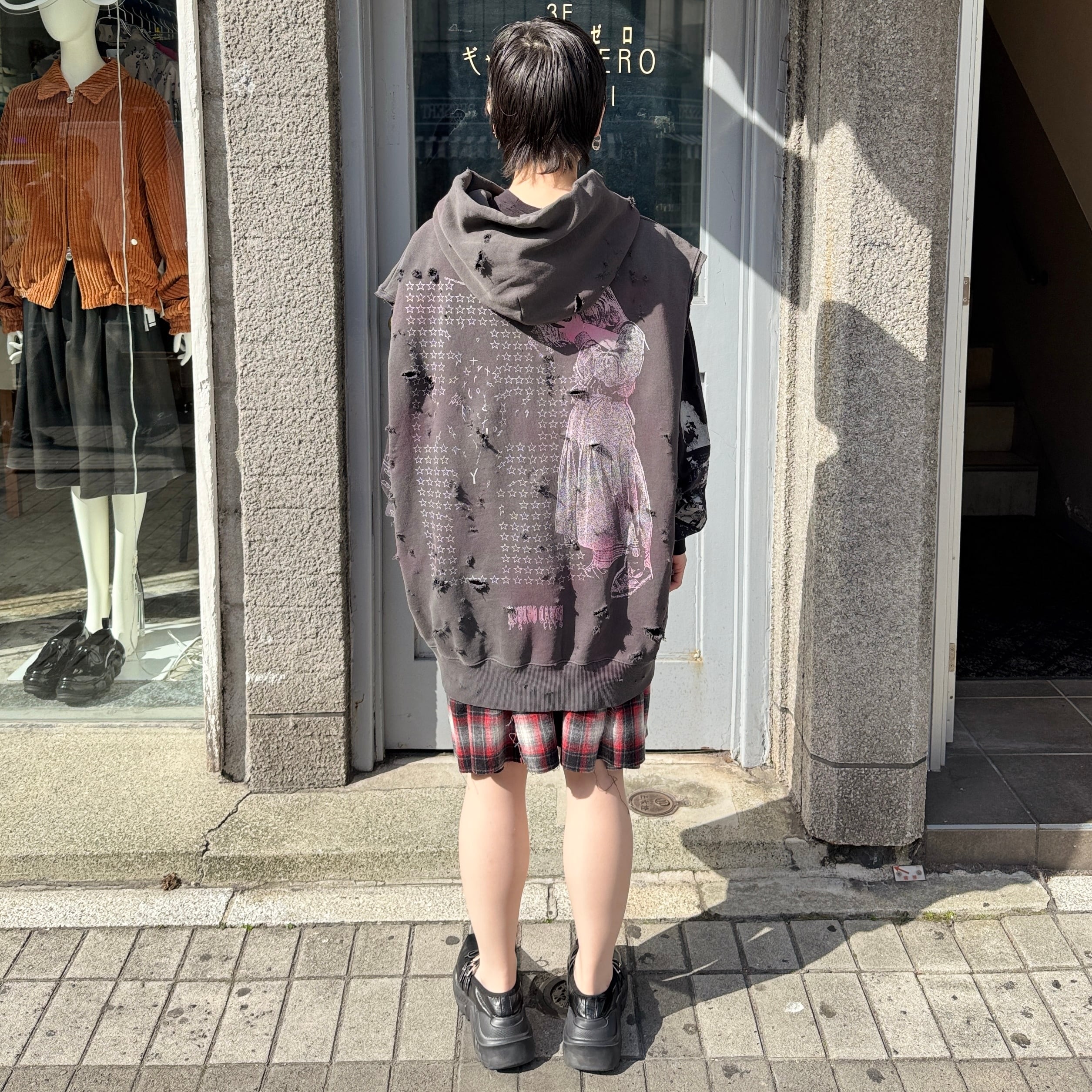 emary / Psycho candy no sleeve hoodie / DEAD BLACK