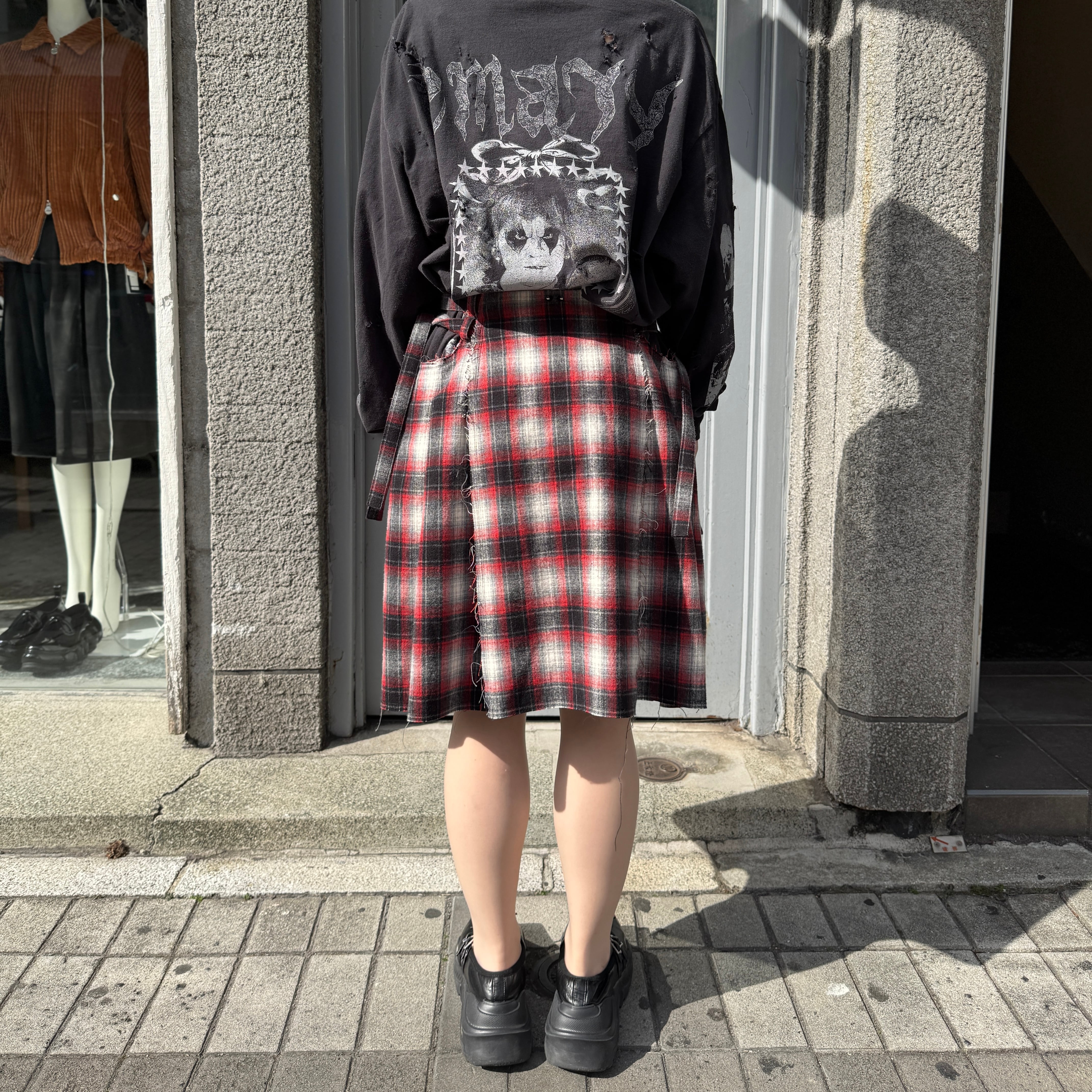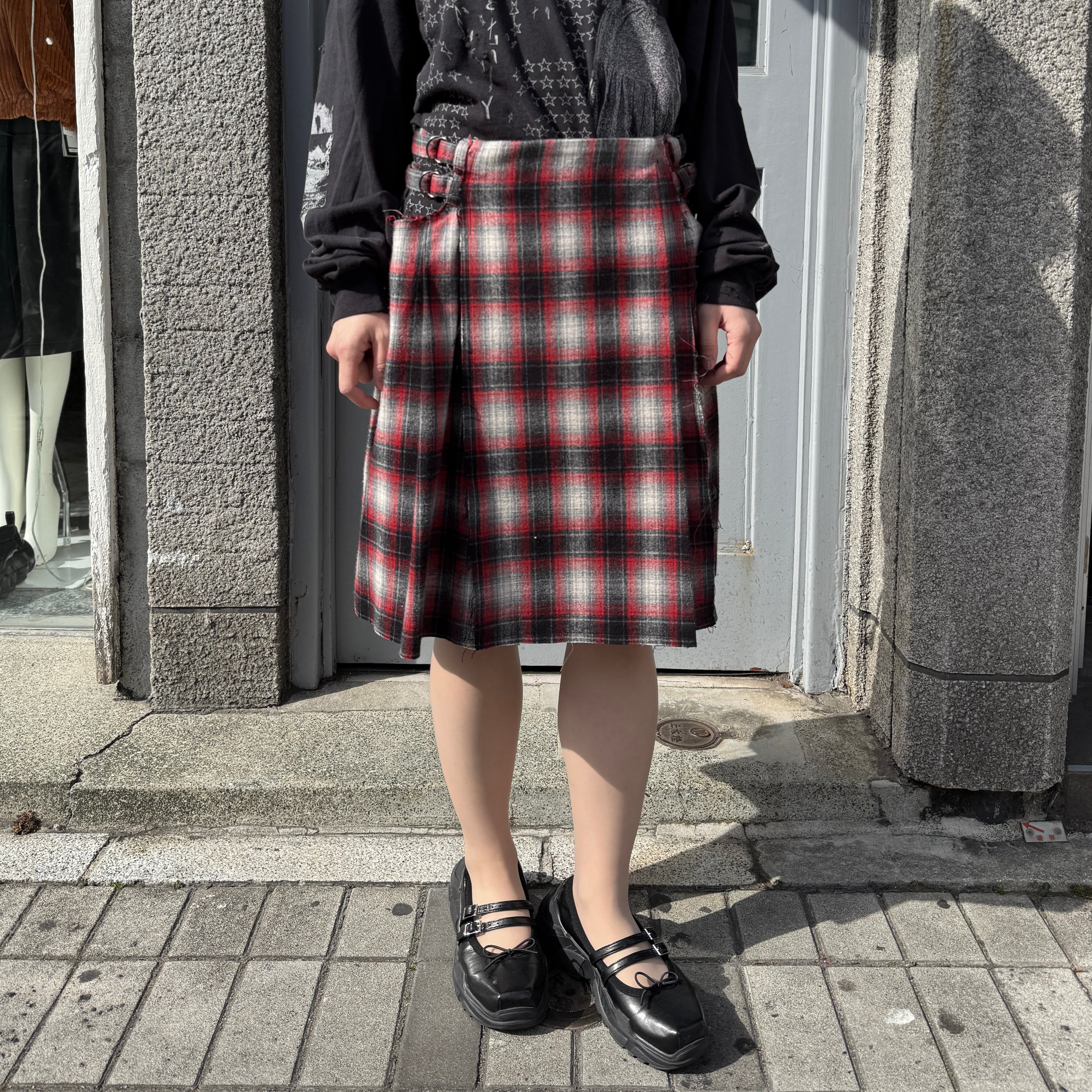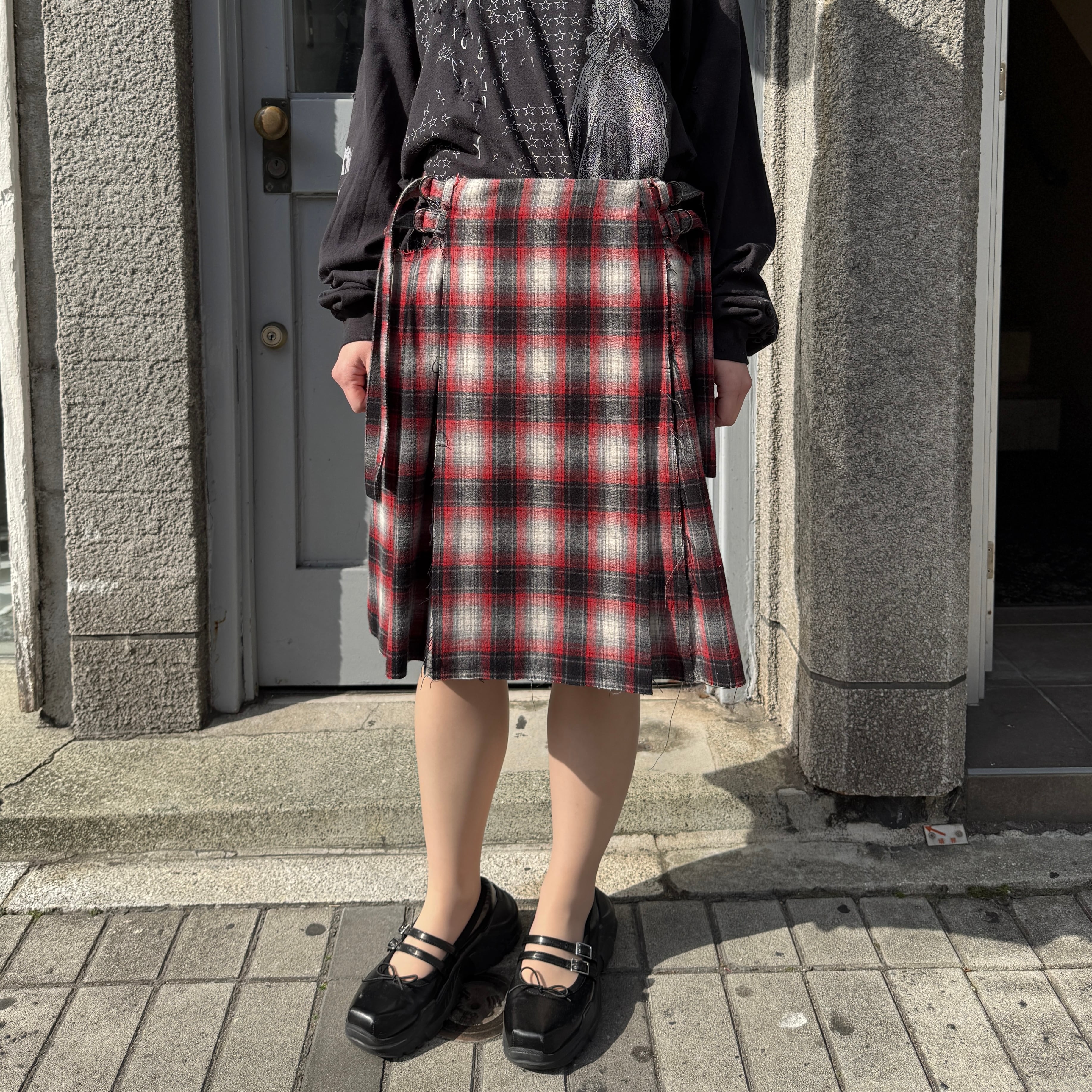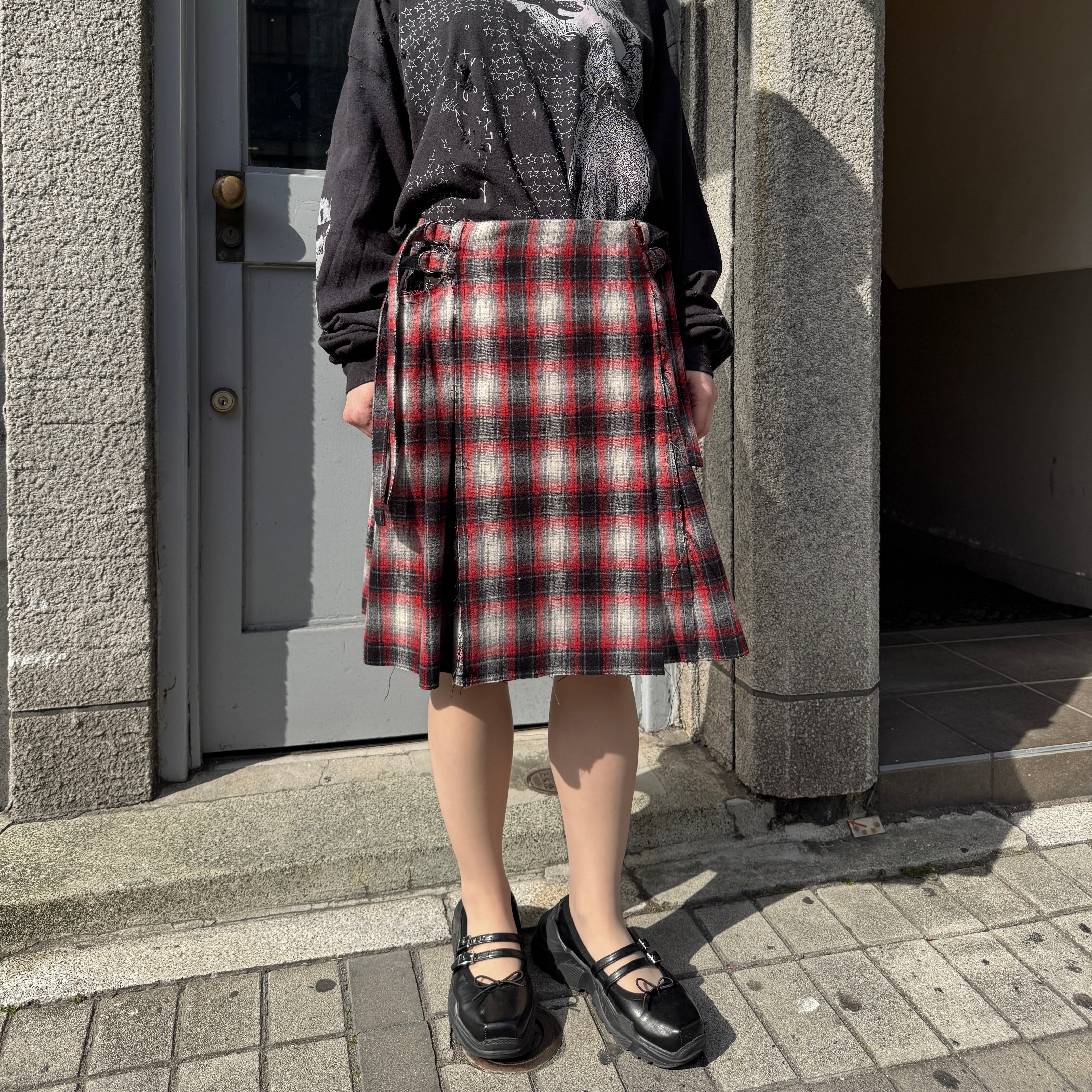 emary / About a Boy check wrap skirt / RED/BLACK