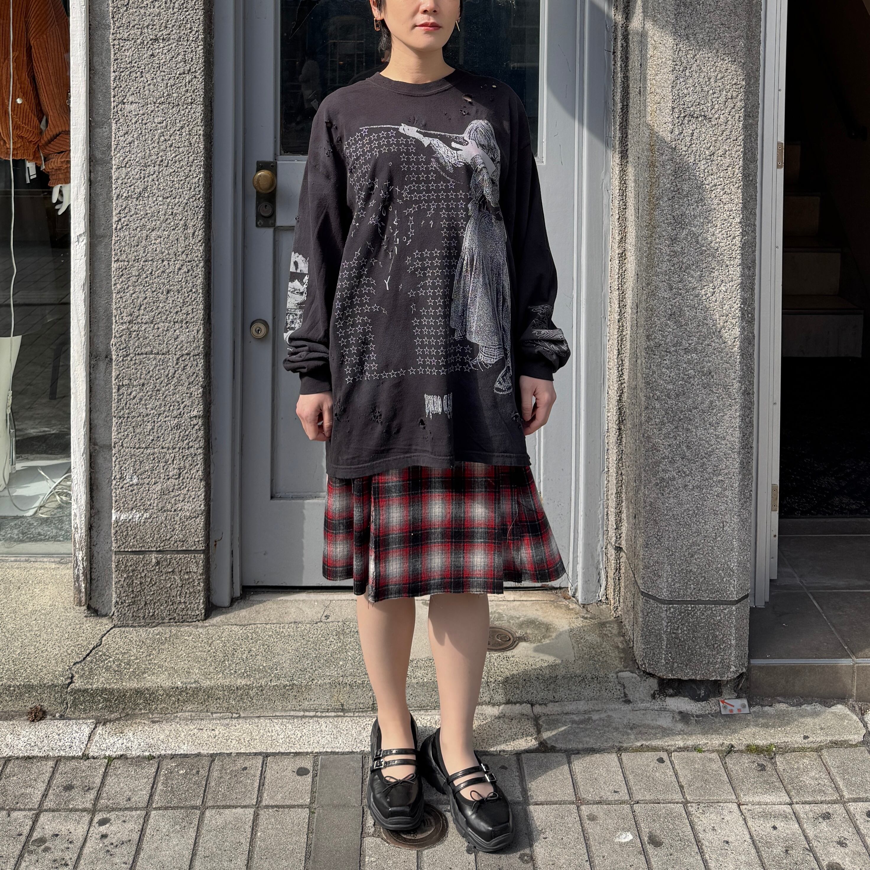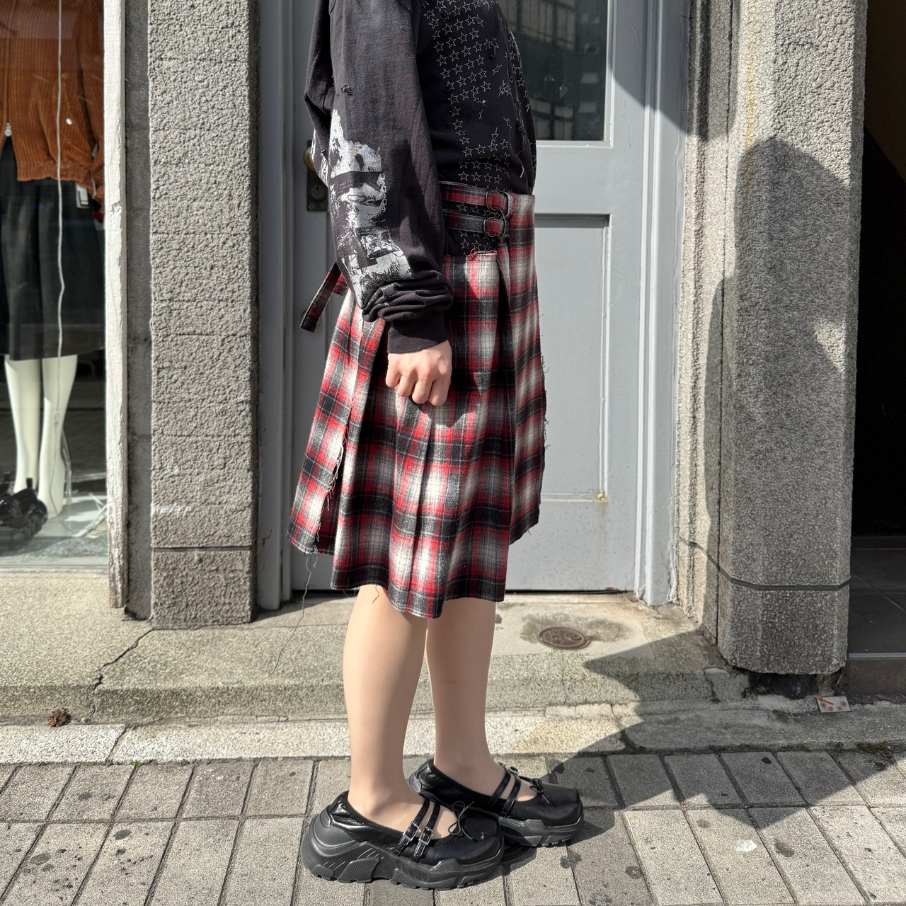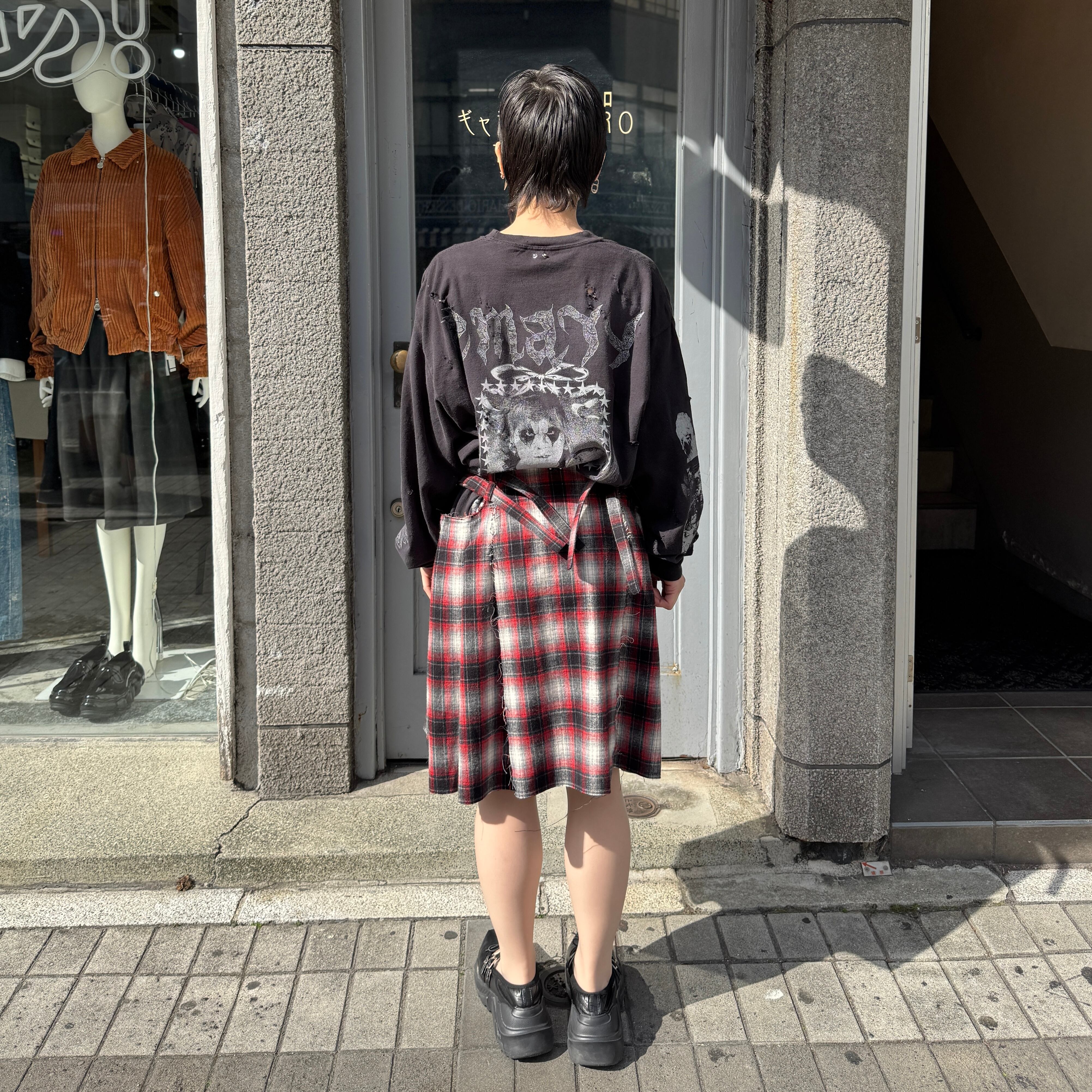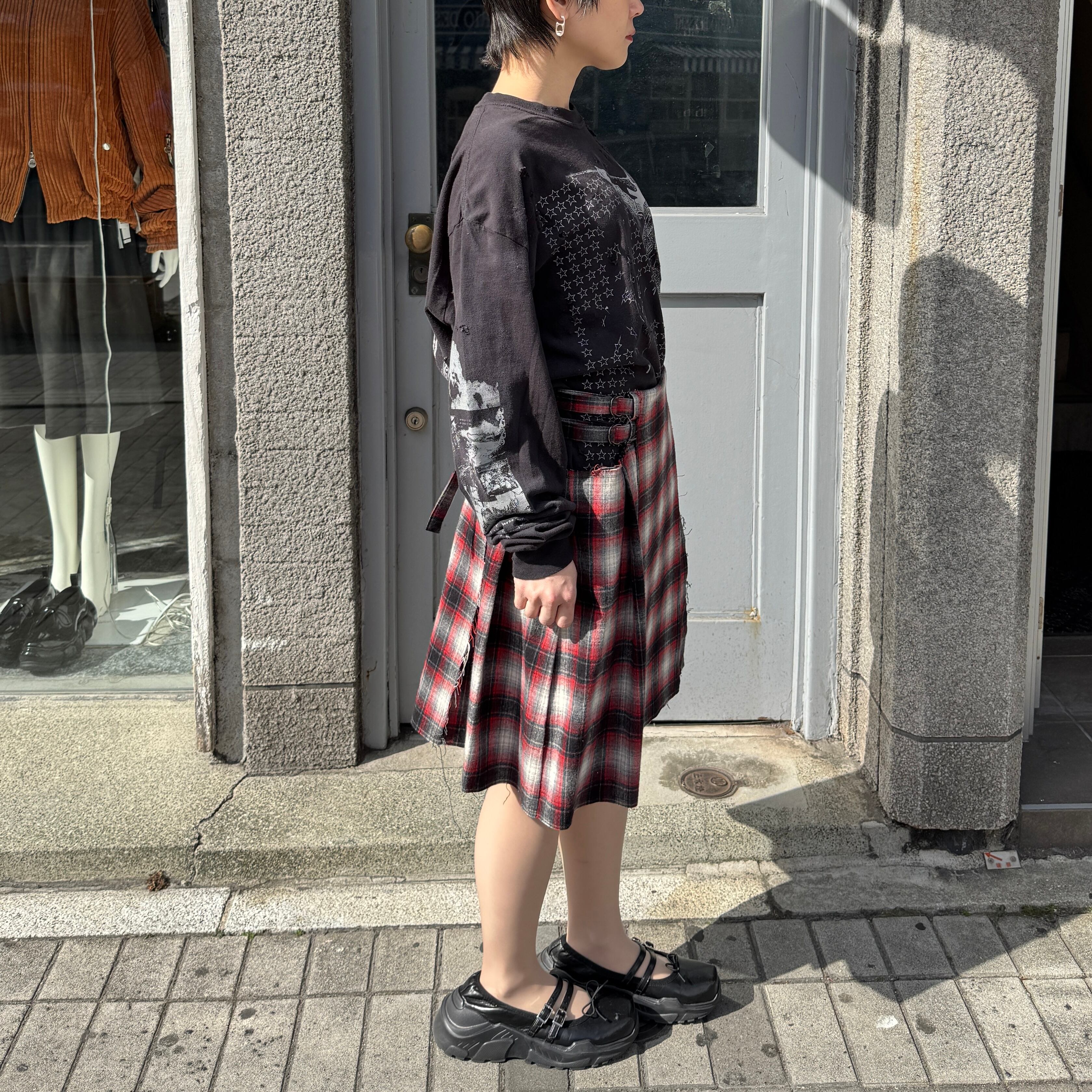 emary / About a Boy check wrap skirt / RED/BLACK