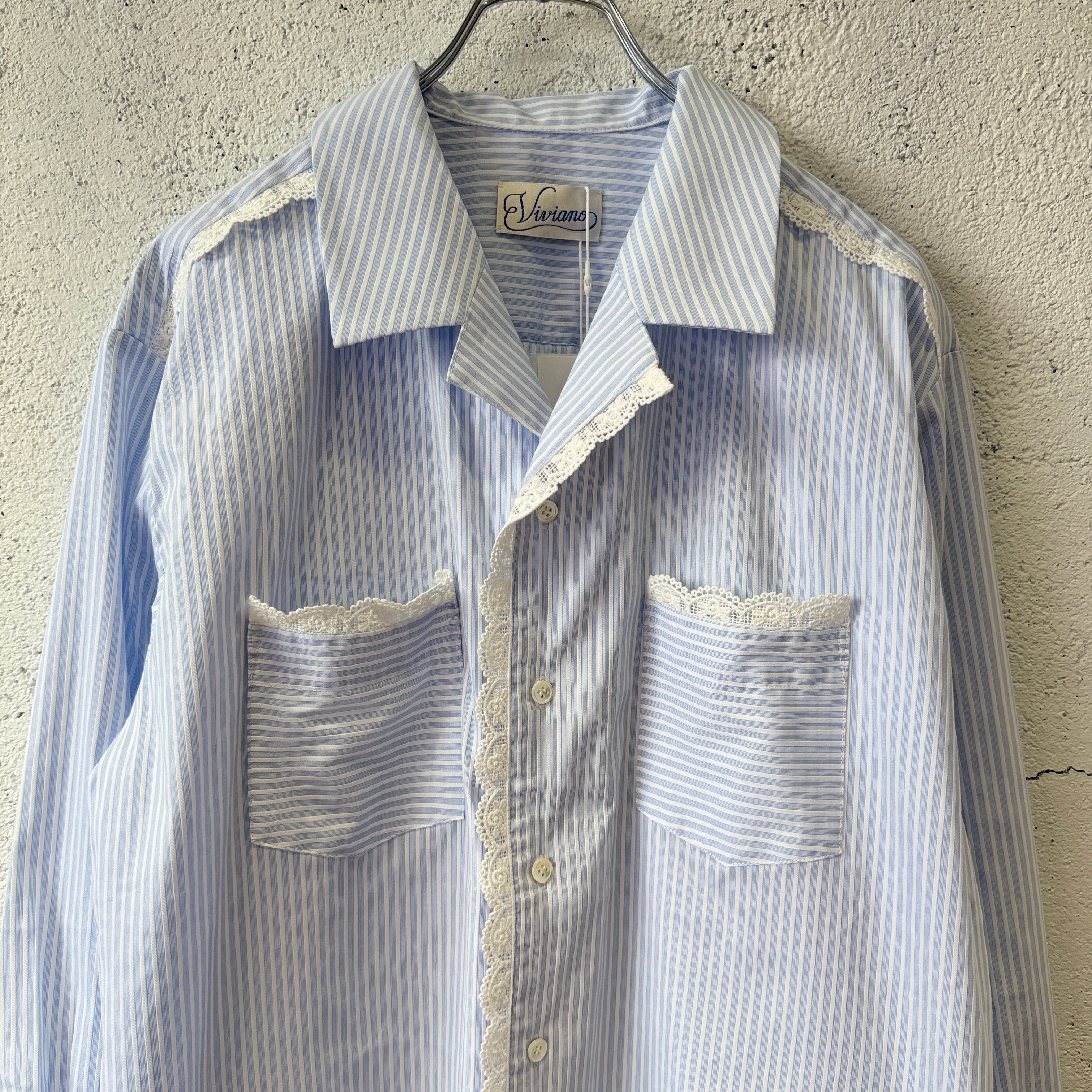 VIVIANO MENS / Lace Trimmed Open Collar Shirts / BLUE STRIPE