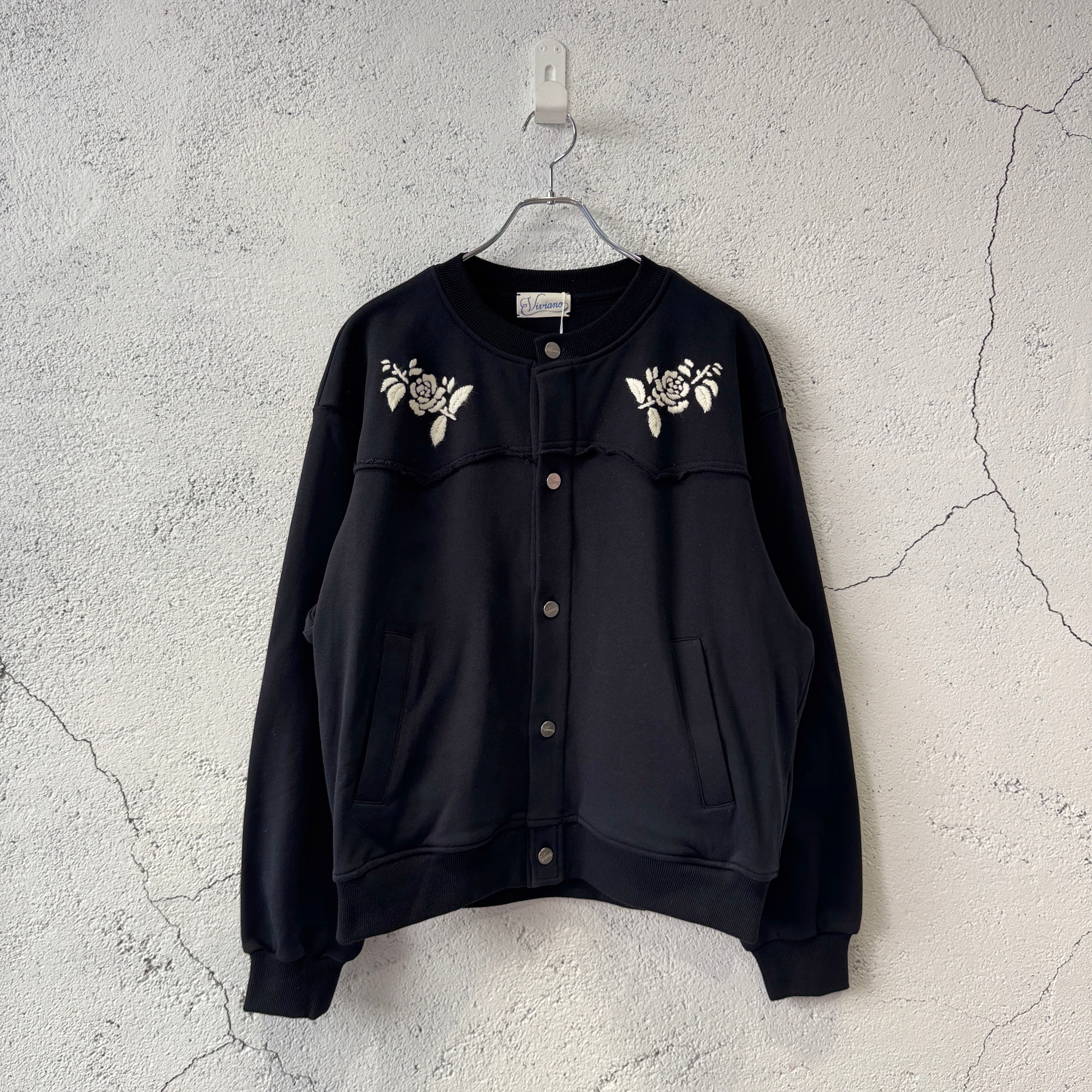 VIVIANO MENS / Hand Embroidered Jersey Cardigan / BLACK