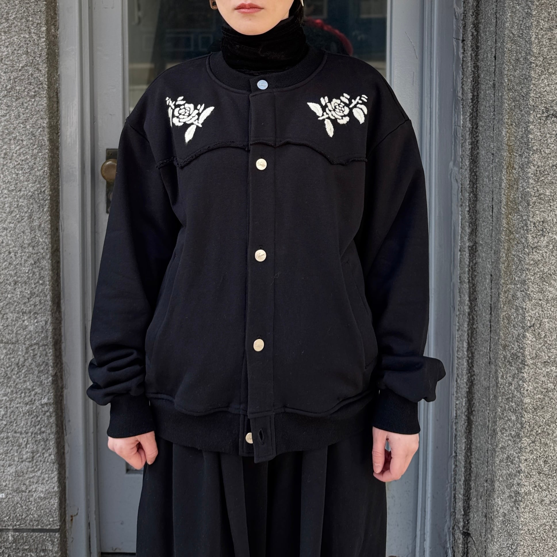 薔薇の花を職人による手刺繍で表現したデザインと断ち切り仕様のウエスタンヨークが特徴です