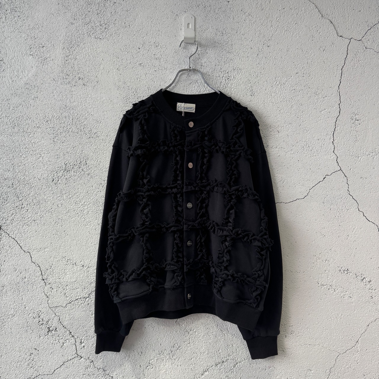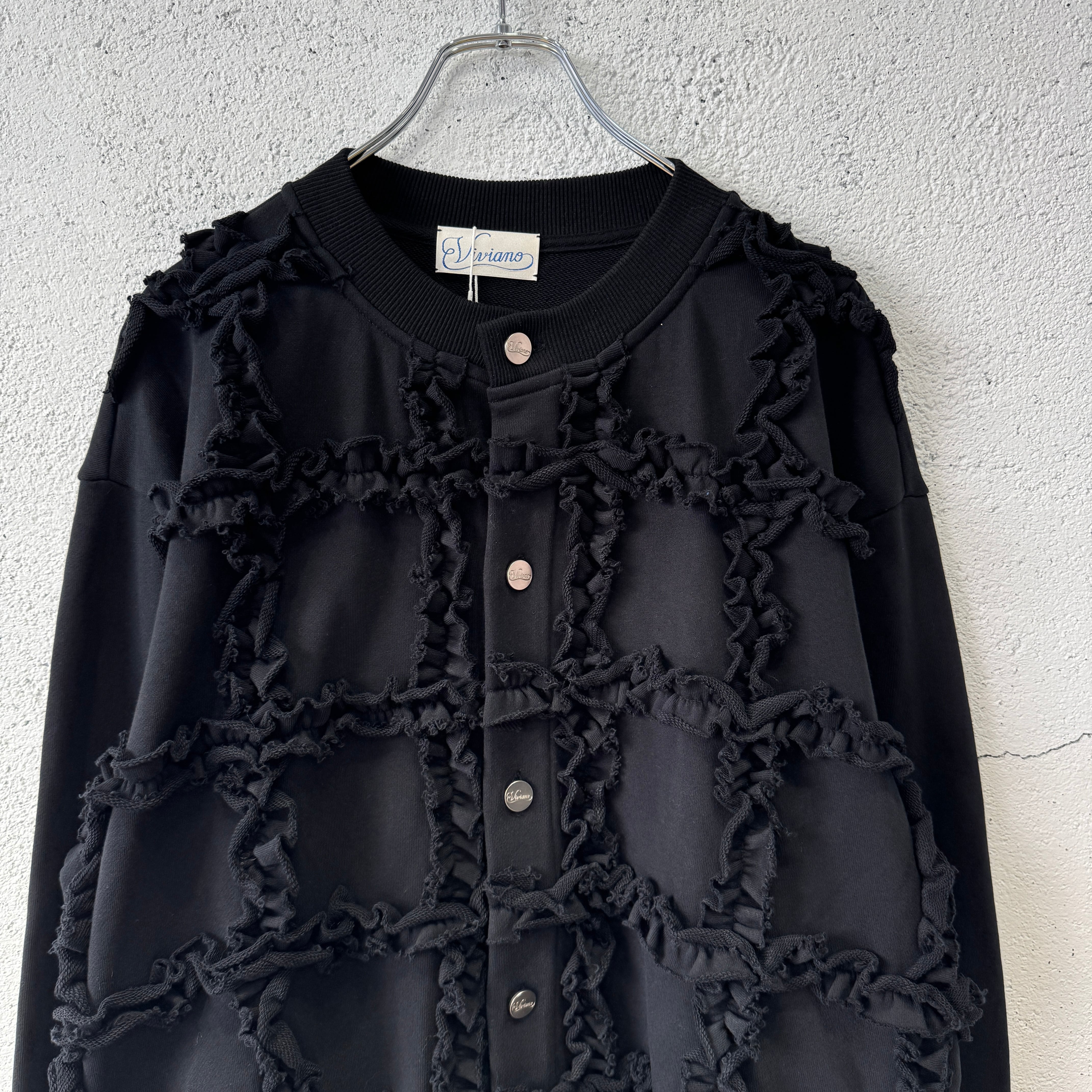 VIVIANO MENS / Ruffle Jersey Cardigan / BLACK