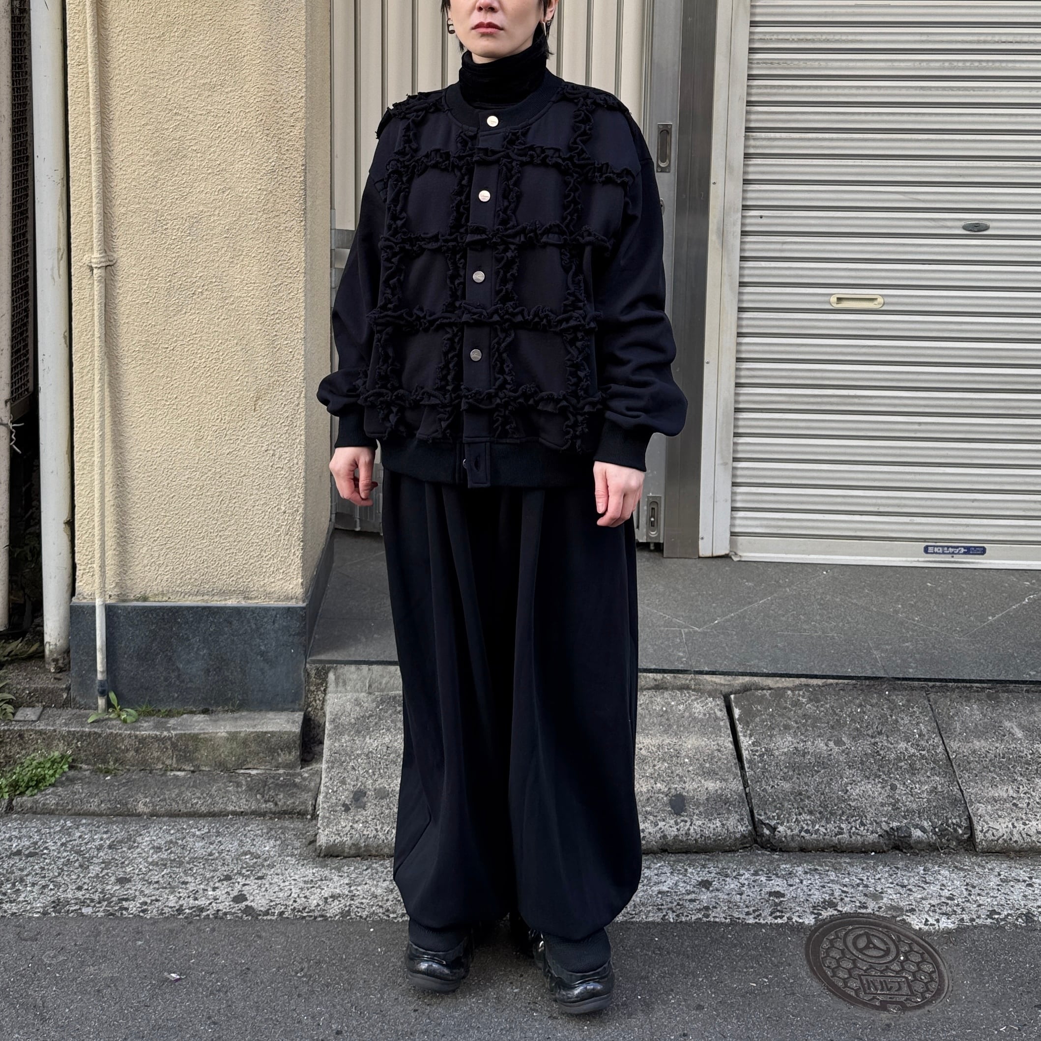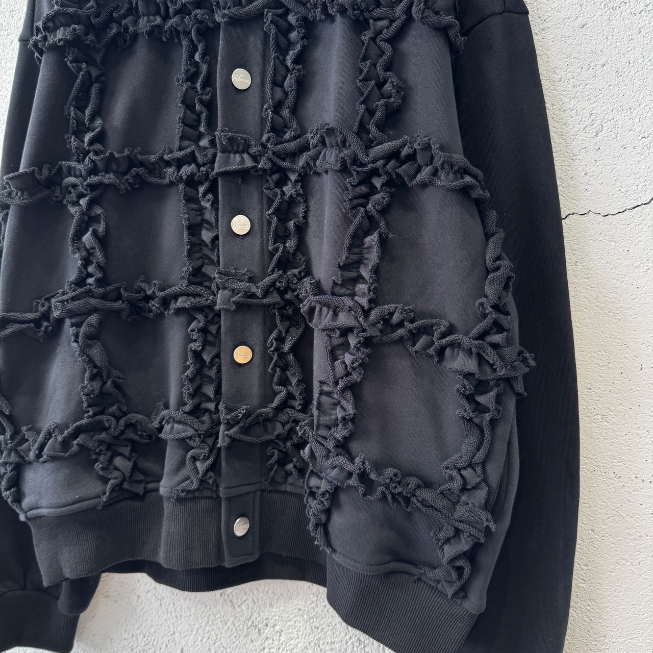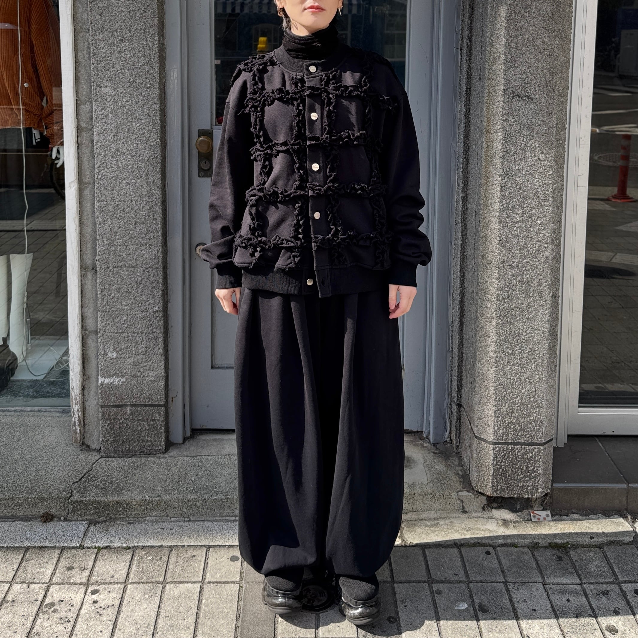 ラッフルを大胆に施したスウェット生地のカーディガン
