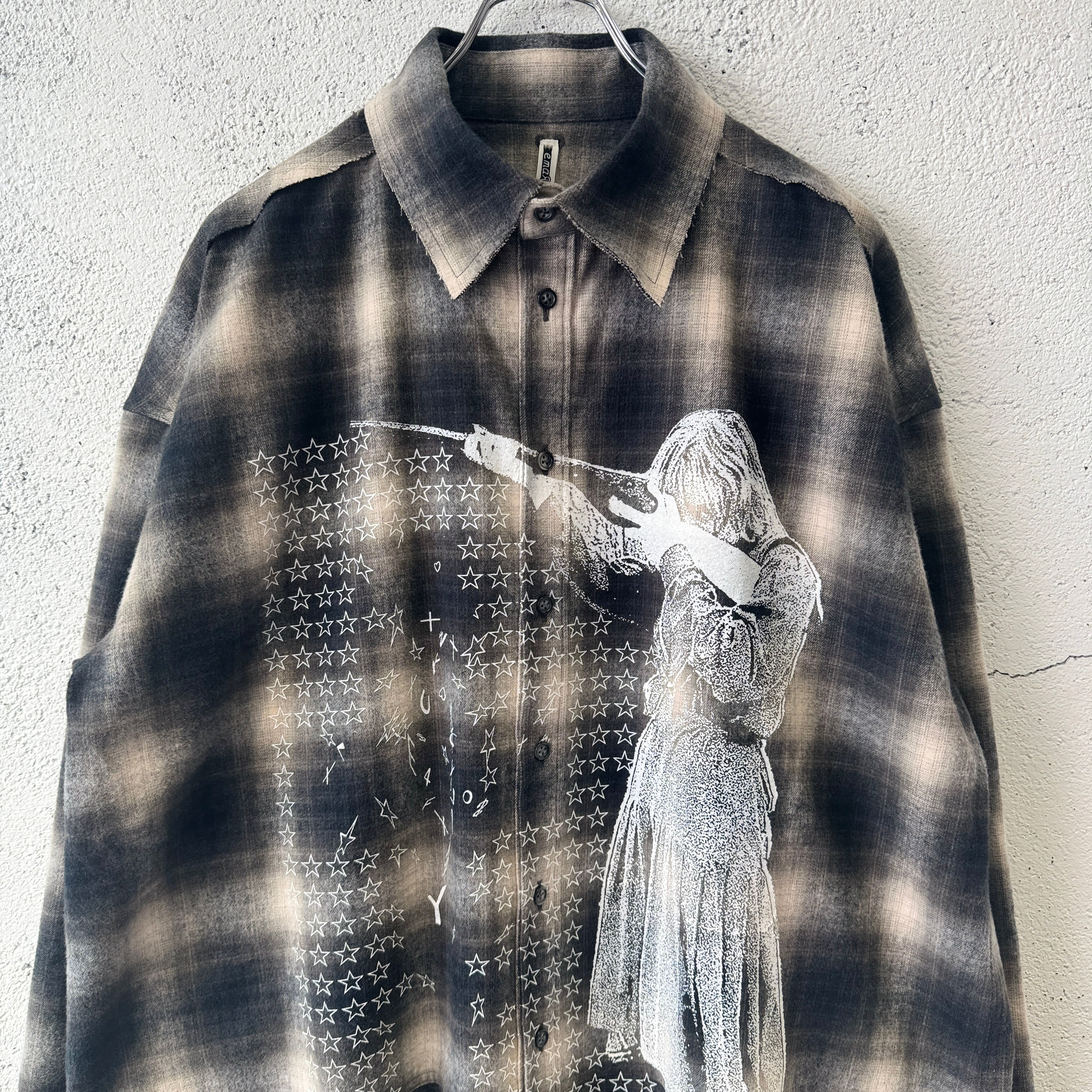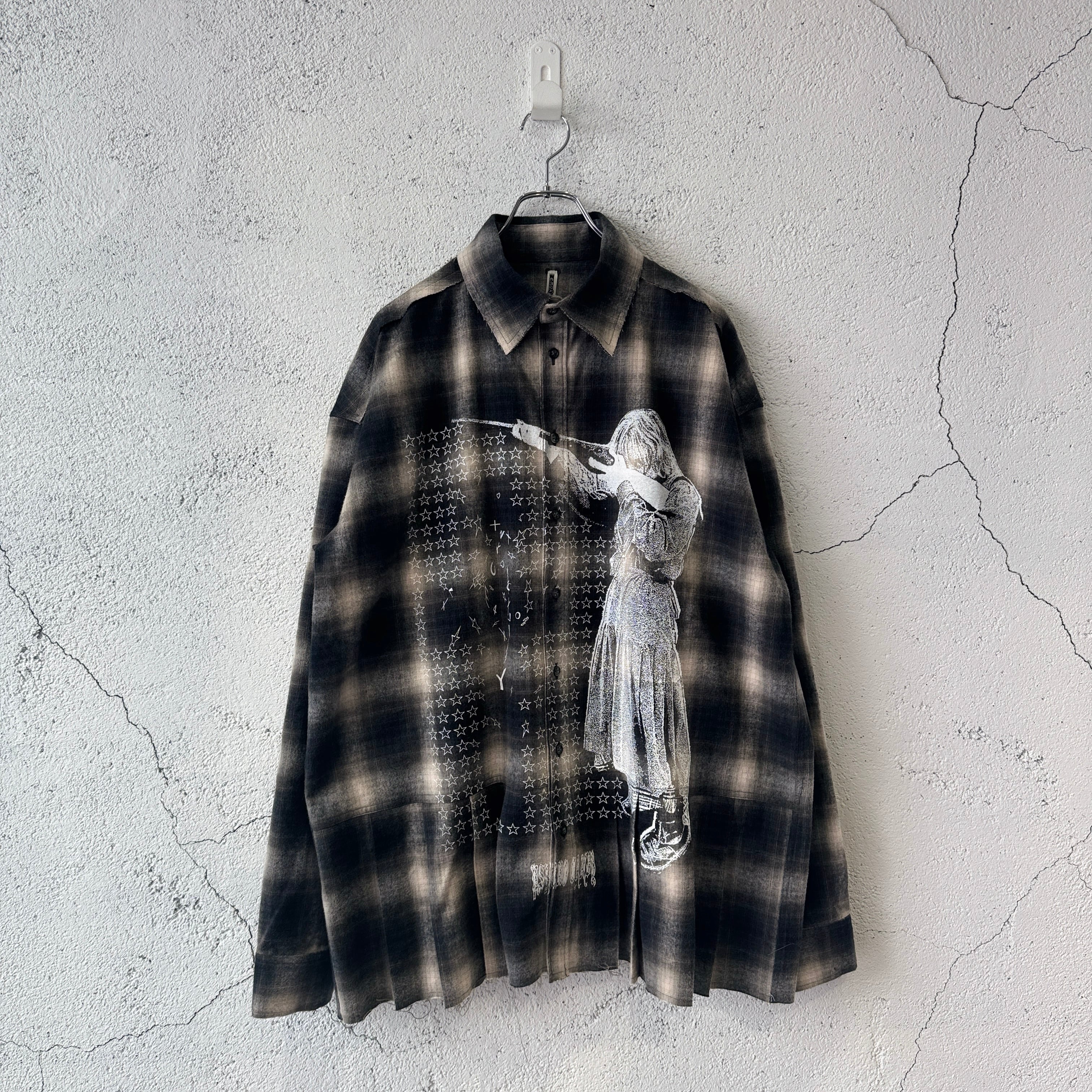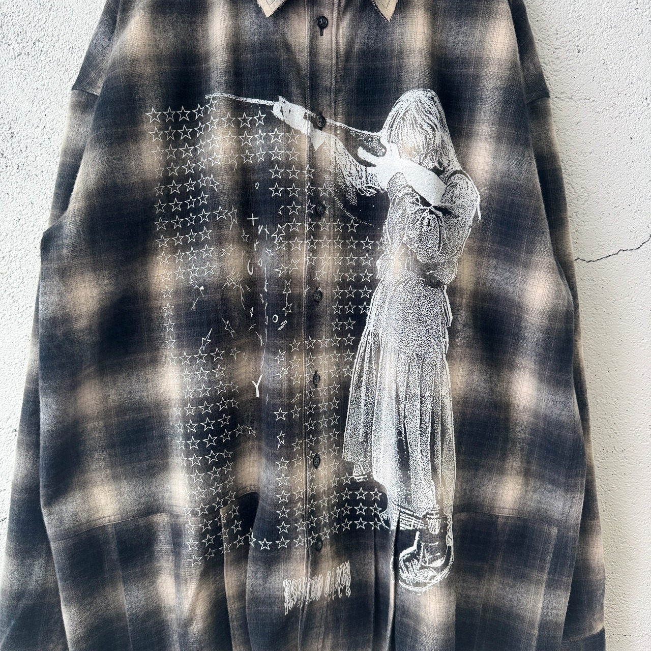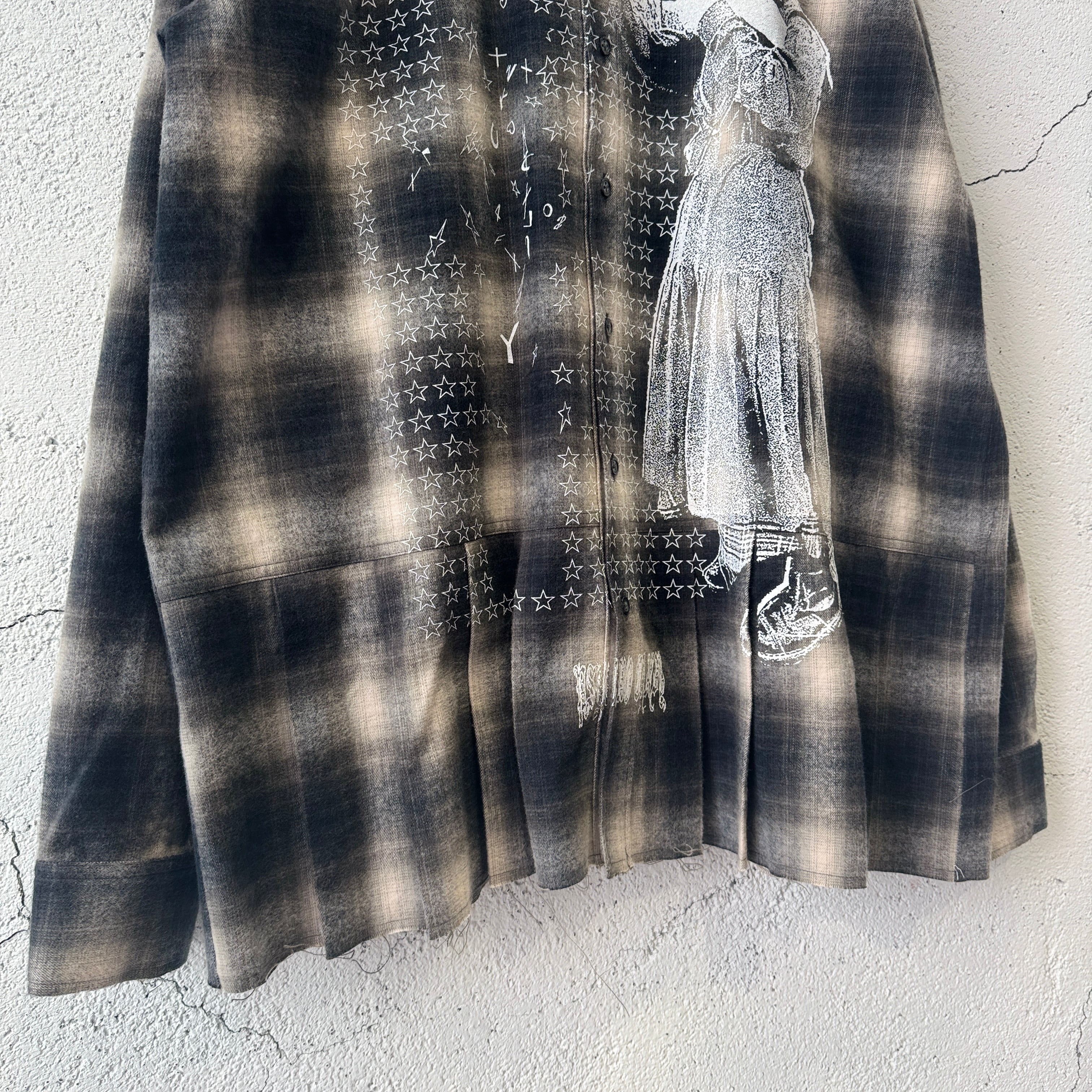 コラージュアーティストOhiana氏によるグラフィックをプリントしたチェックシャツ