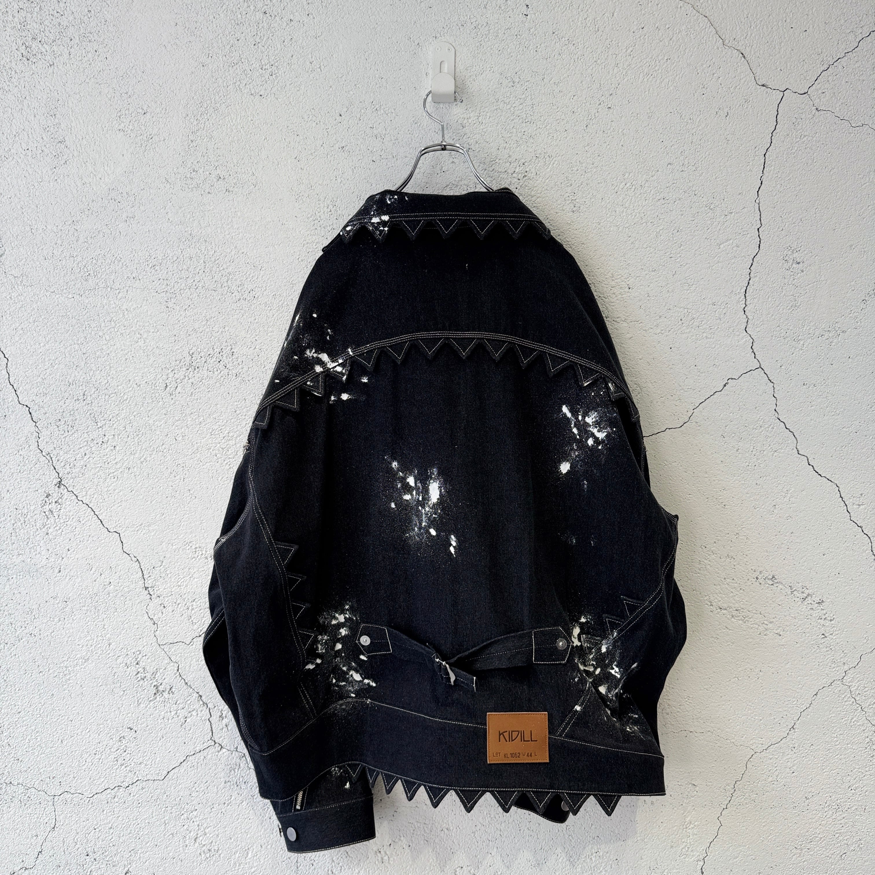 KIDILL / MONSTER DENIM JACKET / BIOSTONE WASHED STAIN DISTRESSED DENIM / BLACK