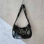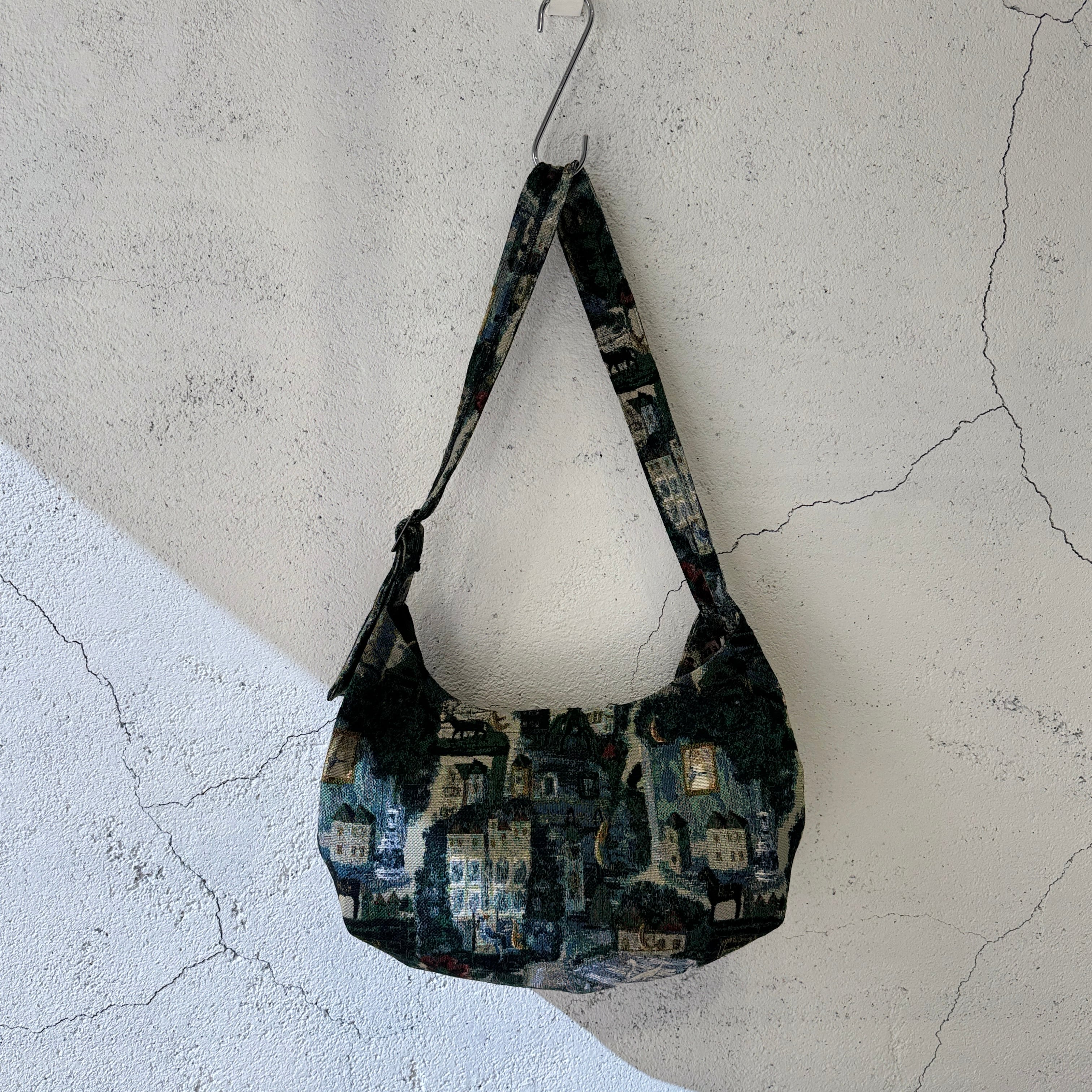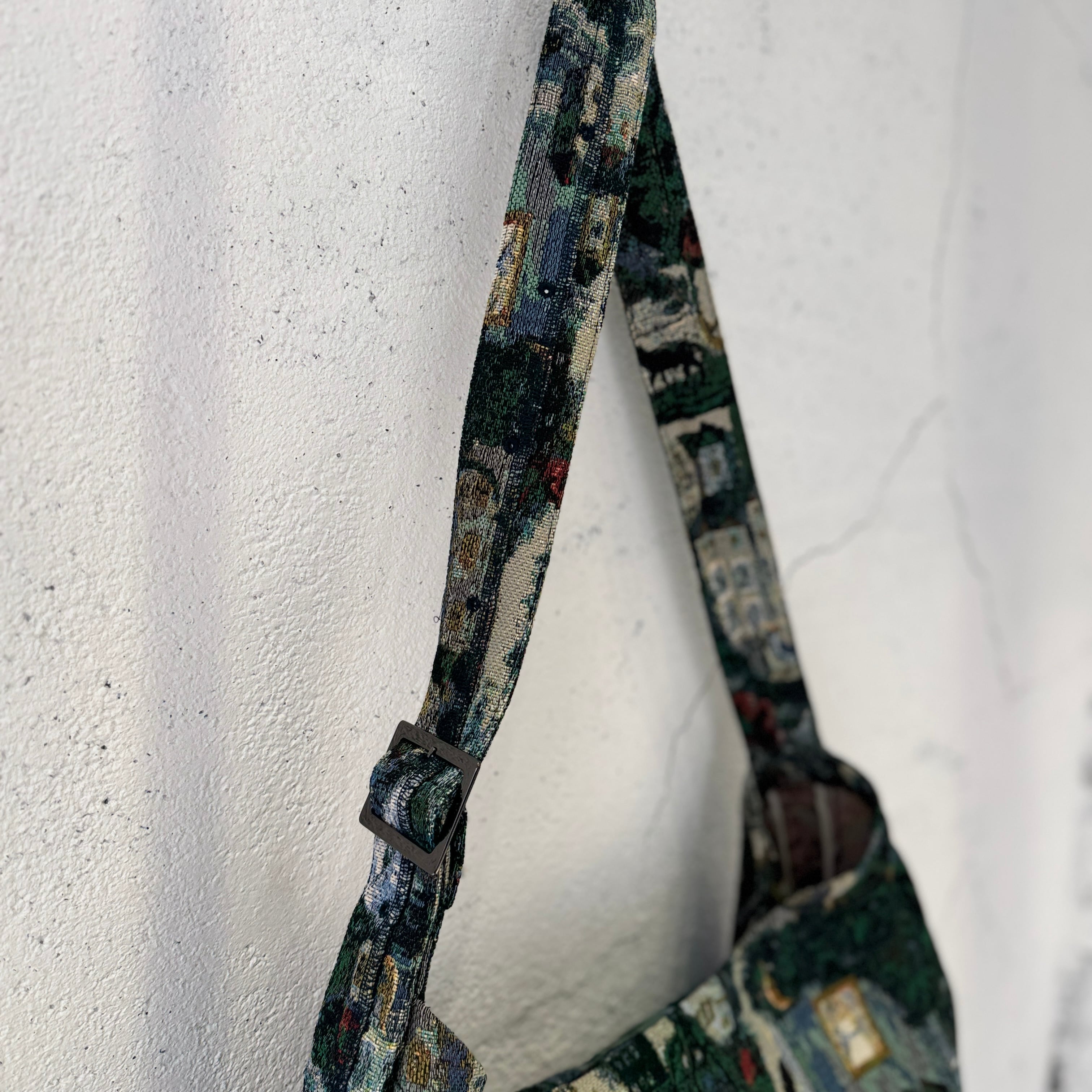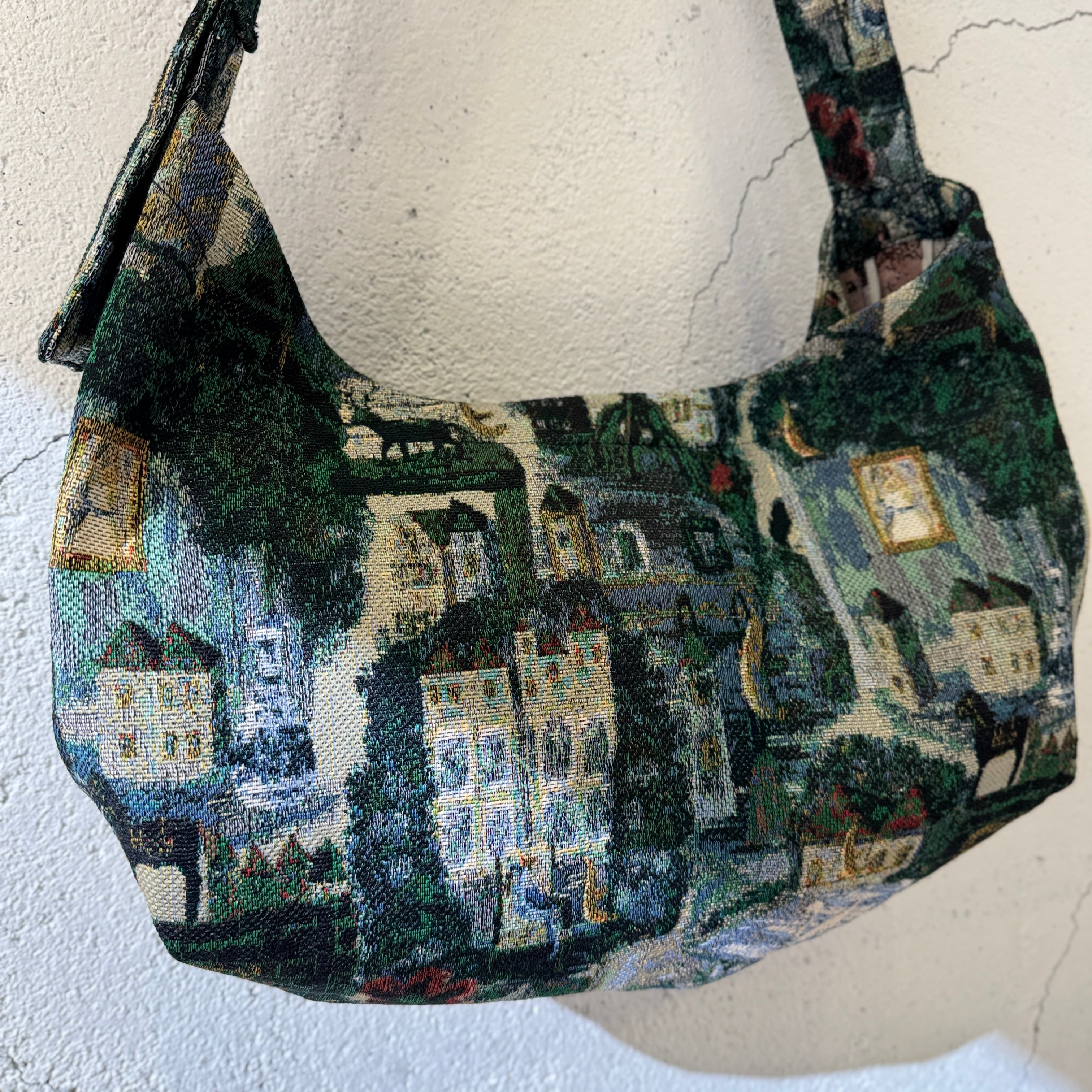 デザイナーによる手描きの絵をゴブラン織りで表現したオリジナルの生地のバッグ