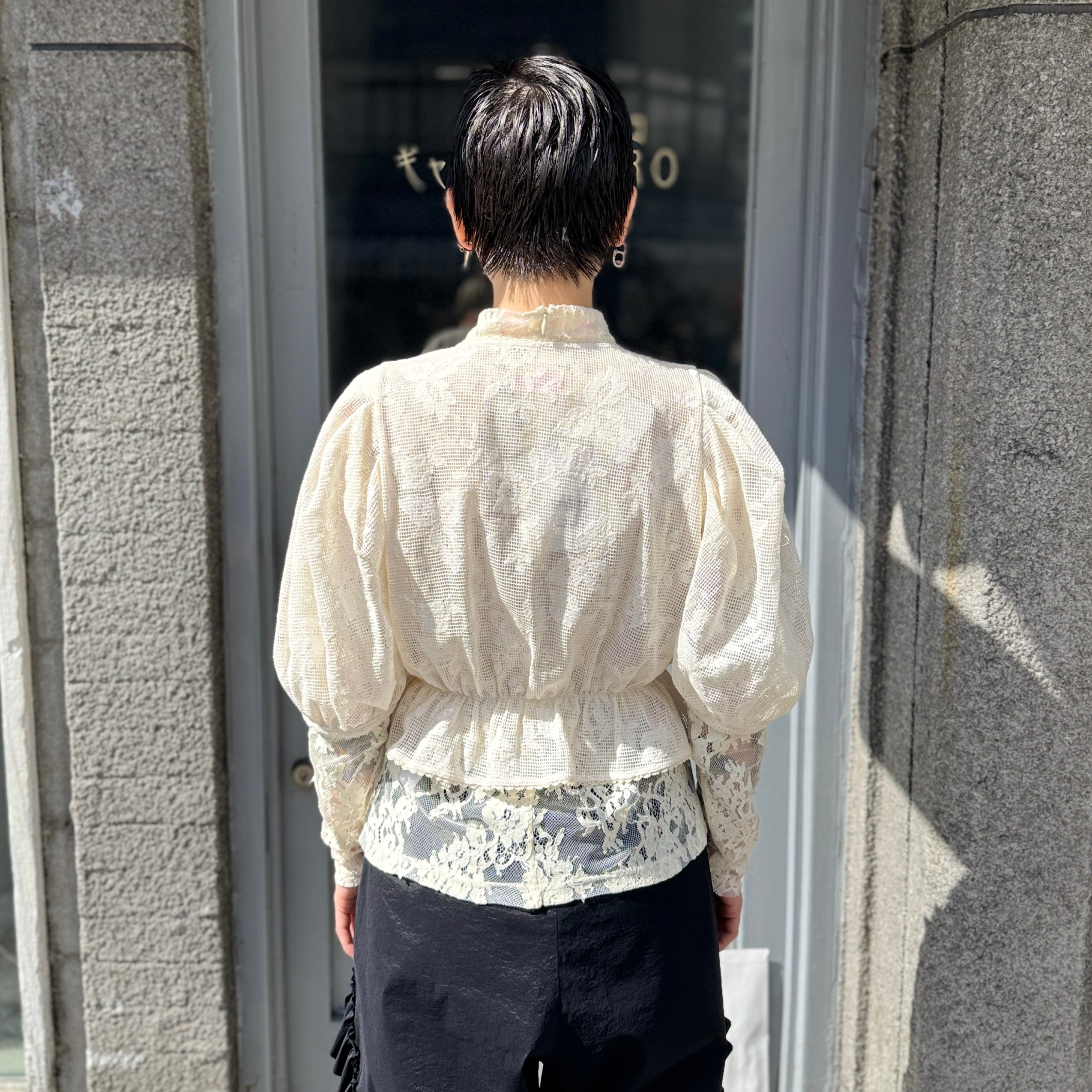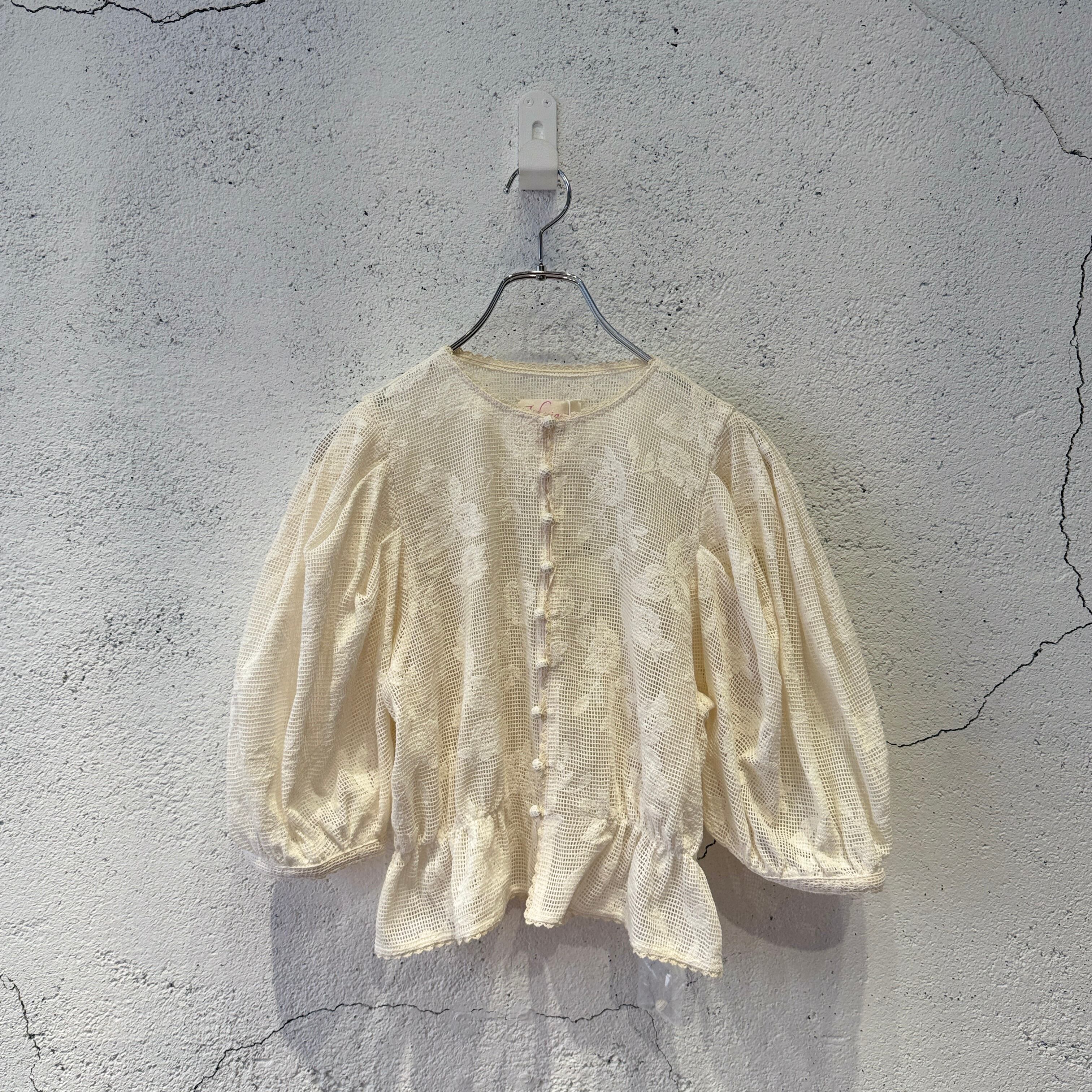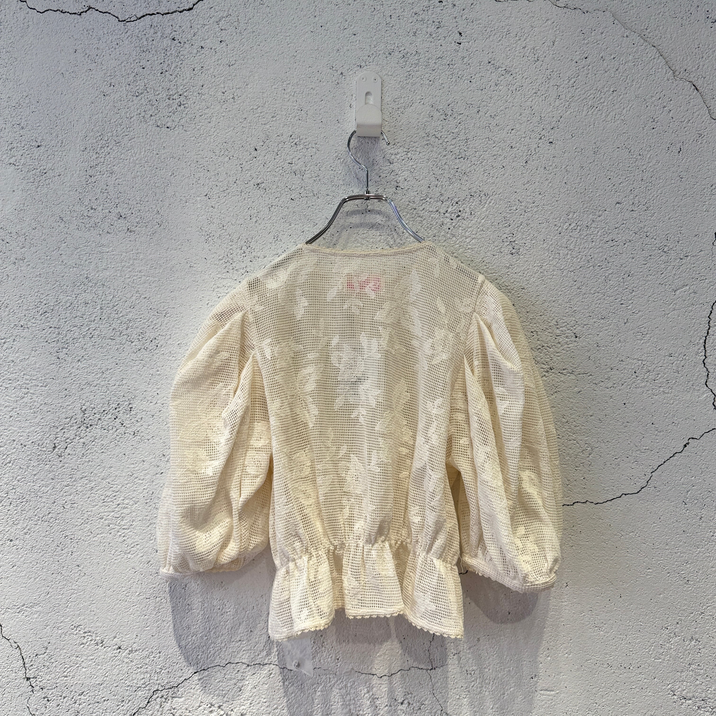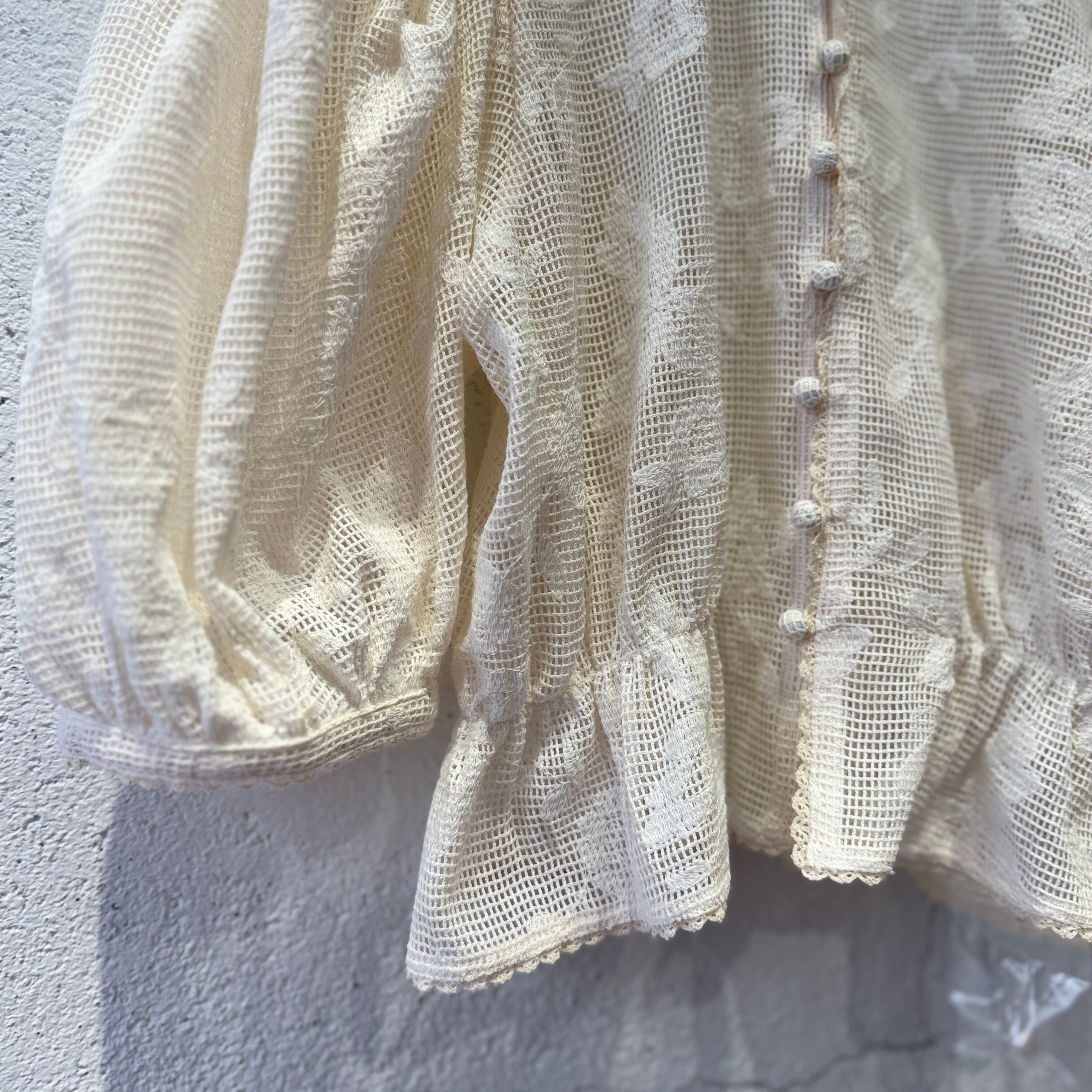 VIVIANO / Embroidered Lace Puff Top / OFF WHITE