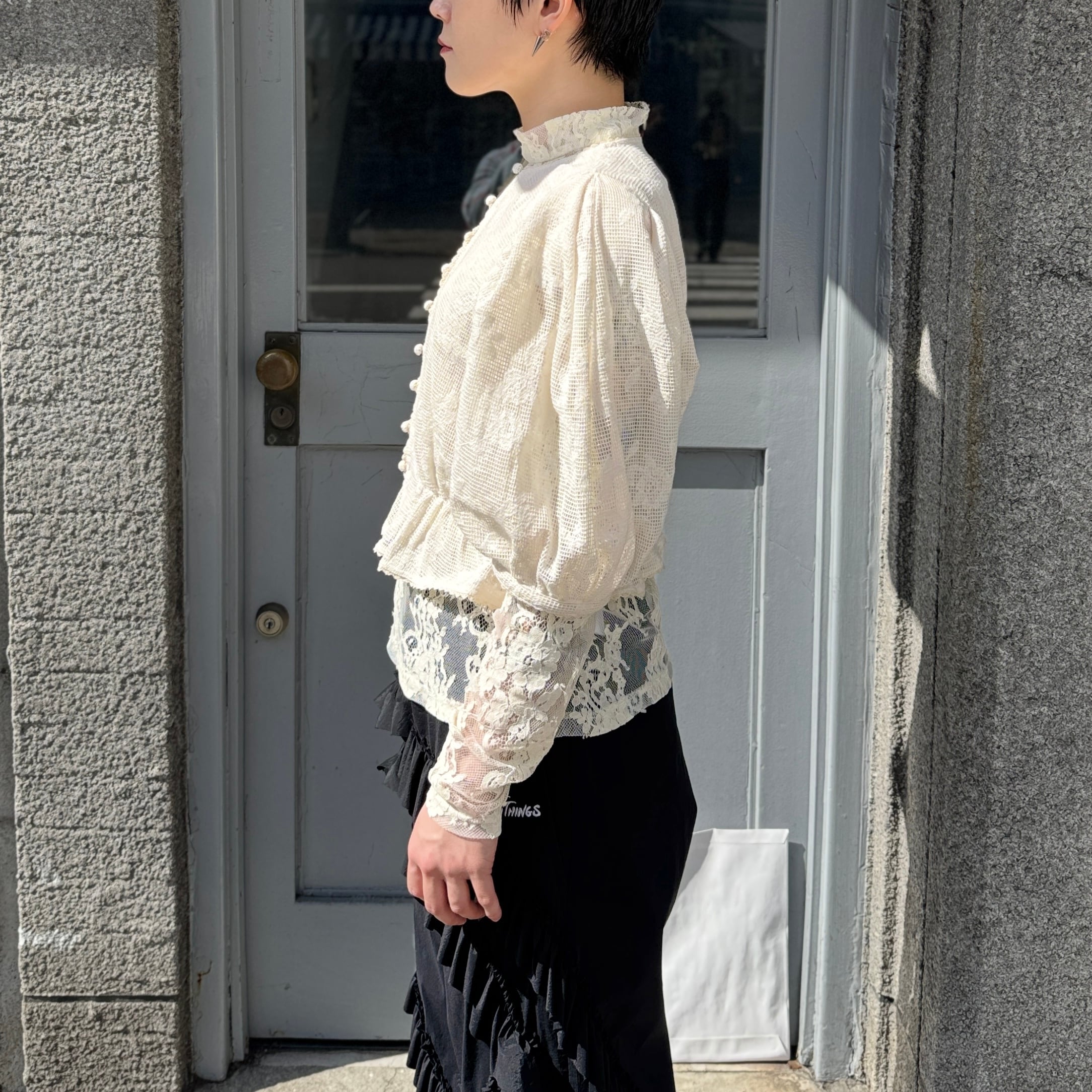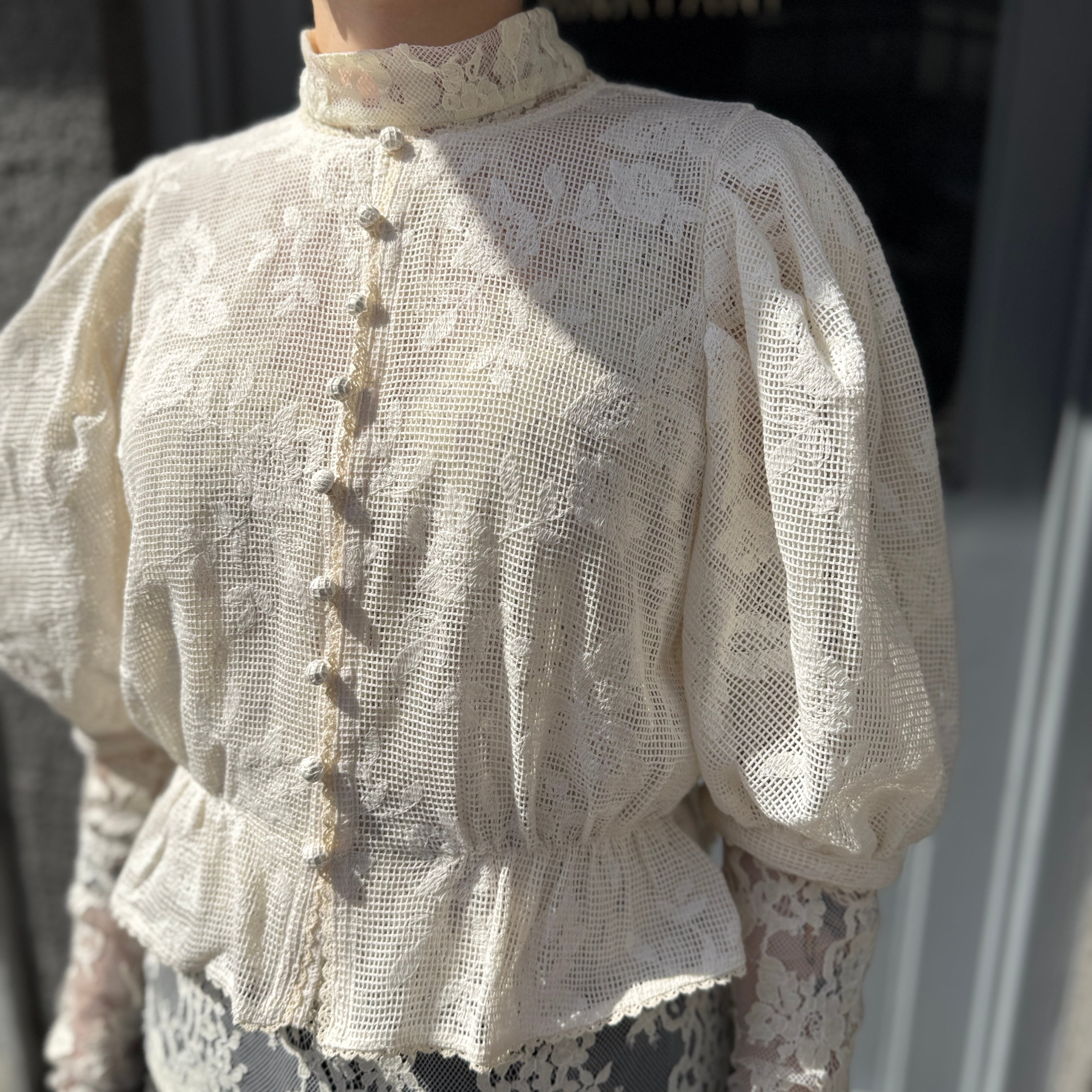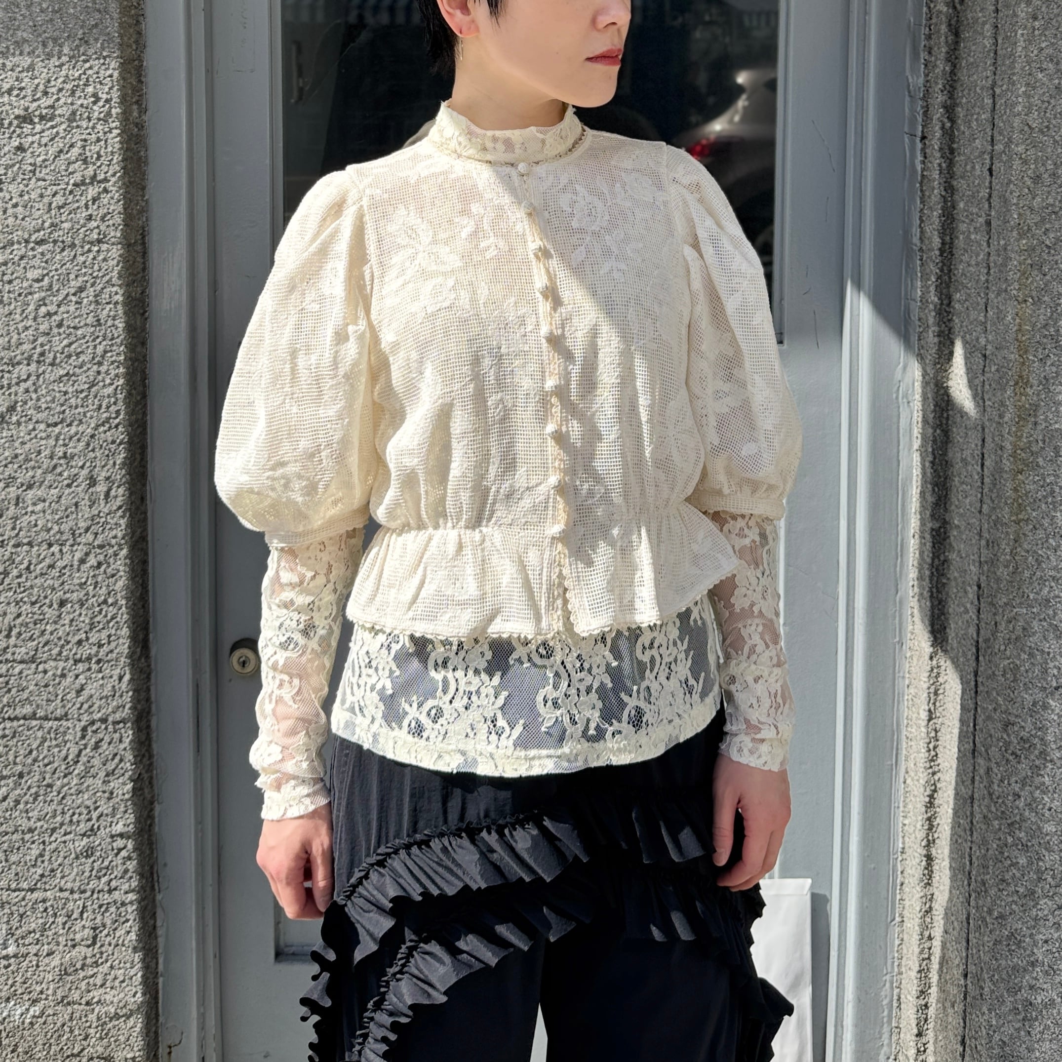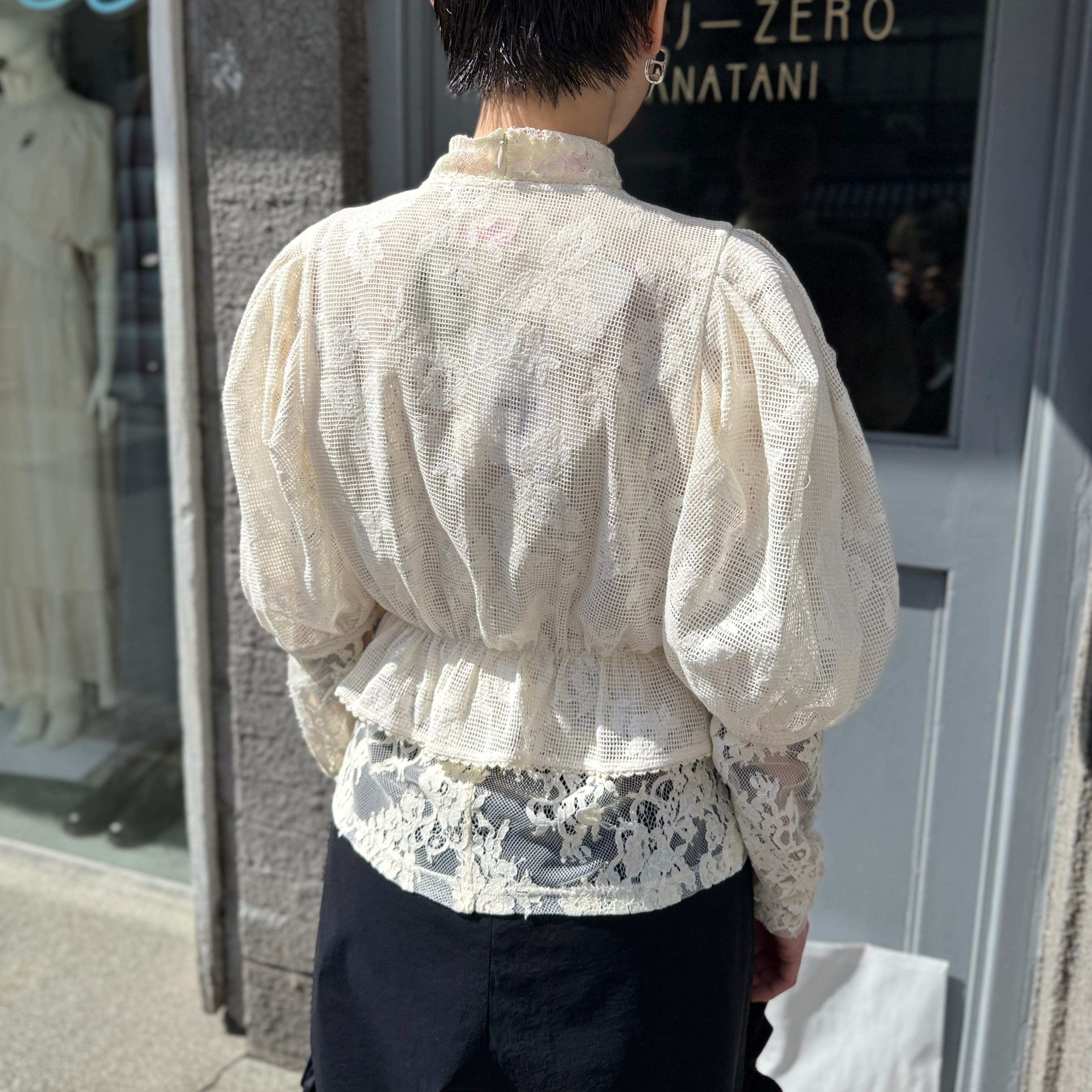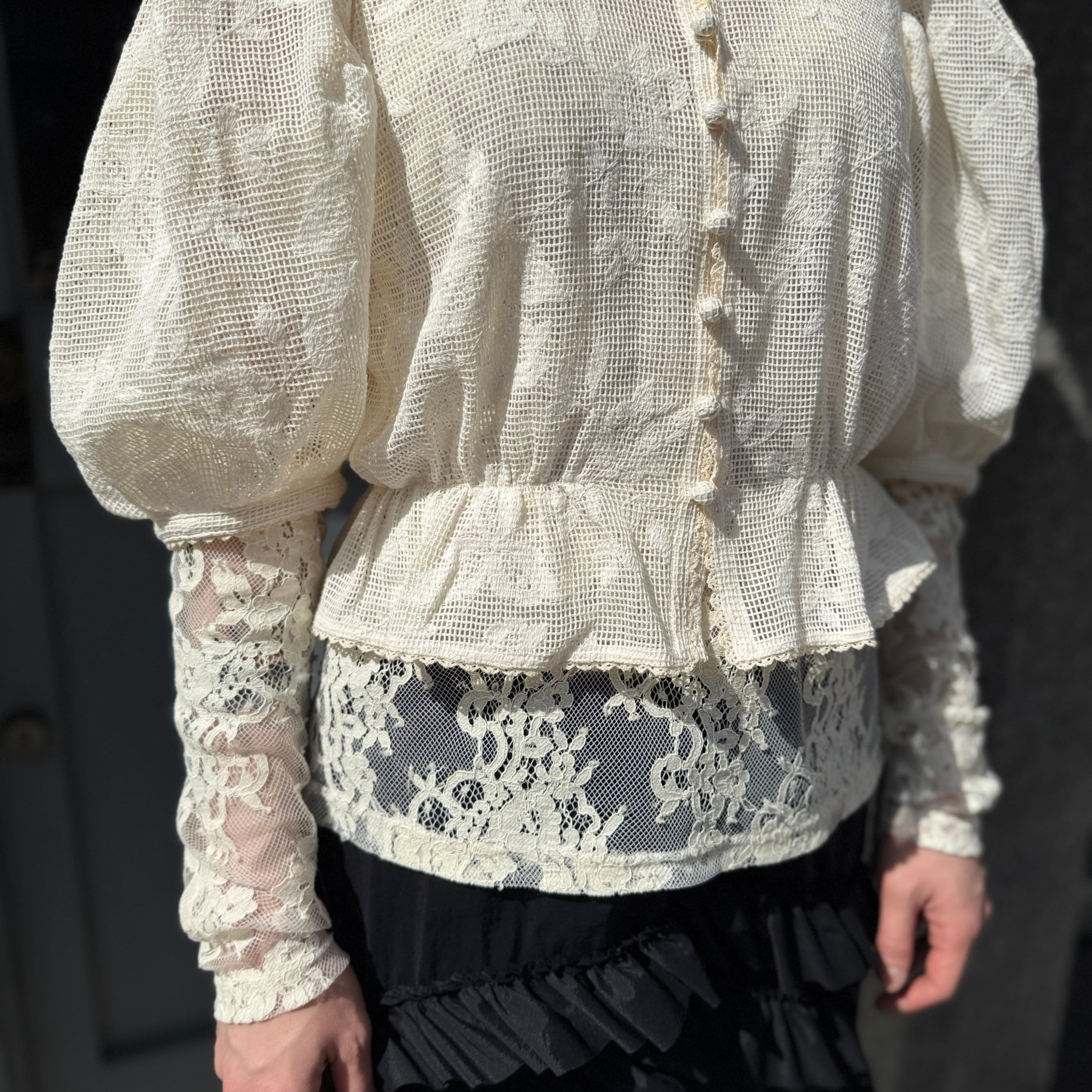 VIVIANO / Embroidered Lace Puff Top / OFF WHITE