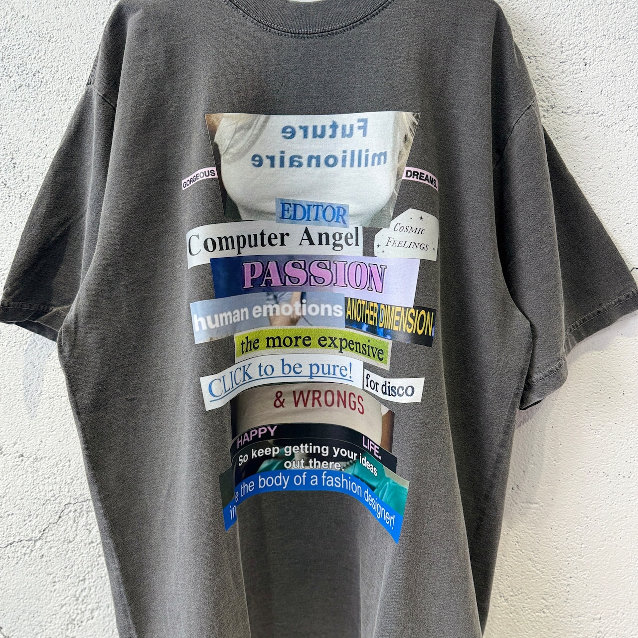 無造作に配置された英単語や英文のカットアップが他にはないユニークな表情を生み出します