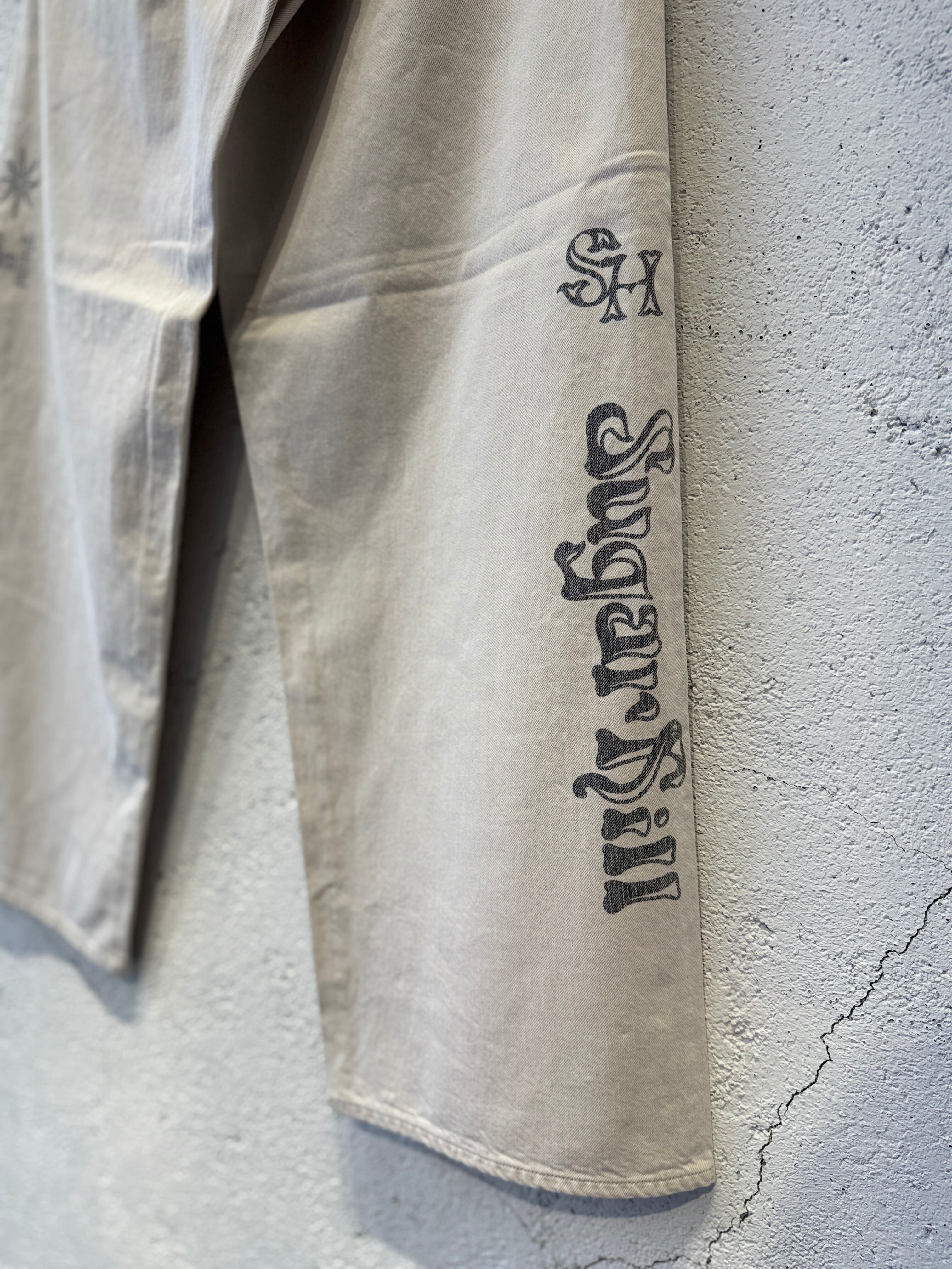 SUGARHILL ファンには見覚えのあるモチーフも含め、ブランドの歴史や遊び心を反映したタトゥーフラッシュ(デザインの作例)をプリントしたワイドパンツ