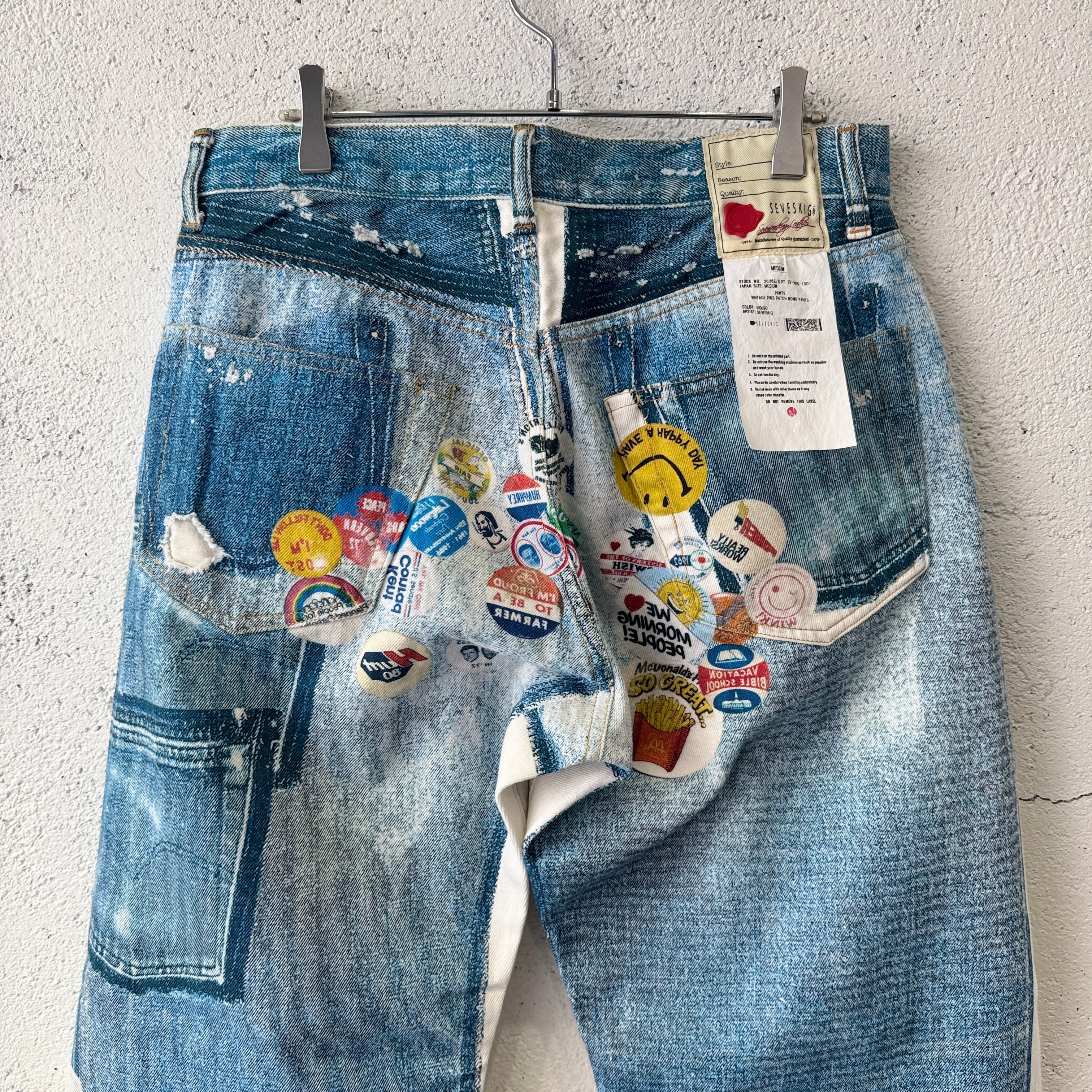 SEVESKIG / Vintage Badge Trompe-l'œil Denim Pants / INDIGO