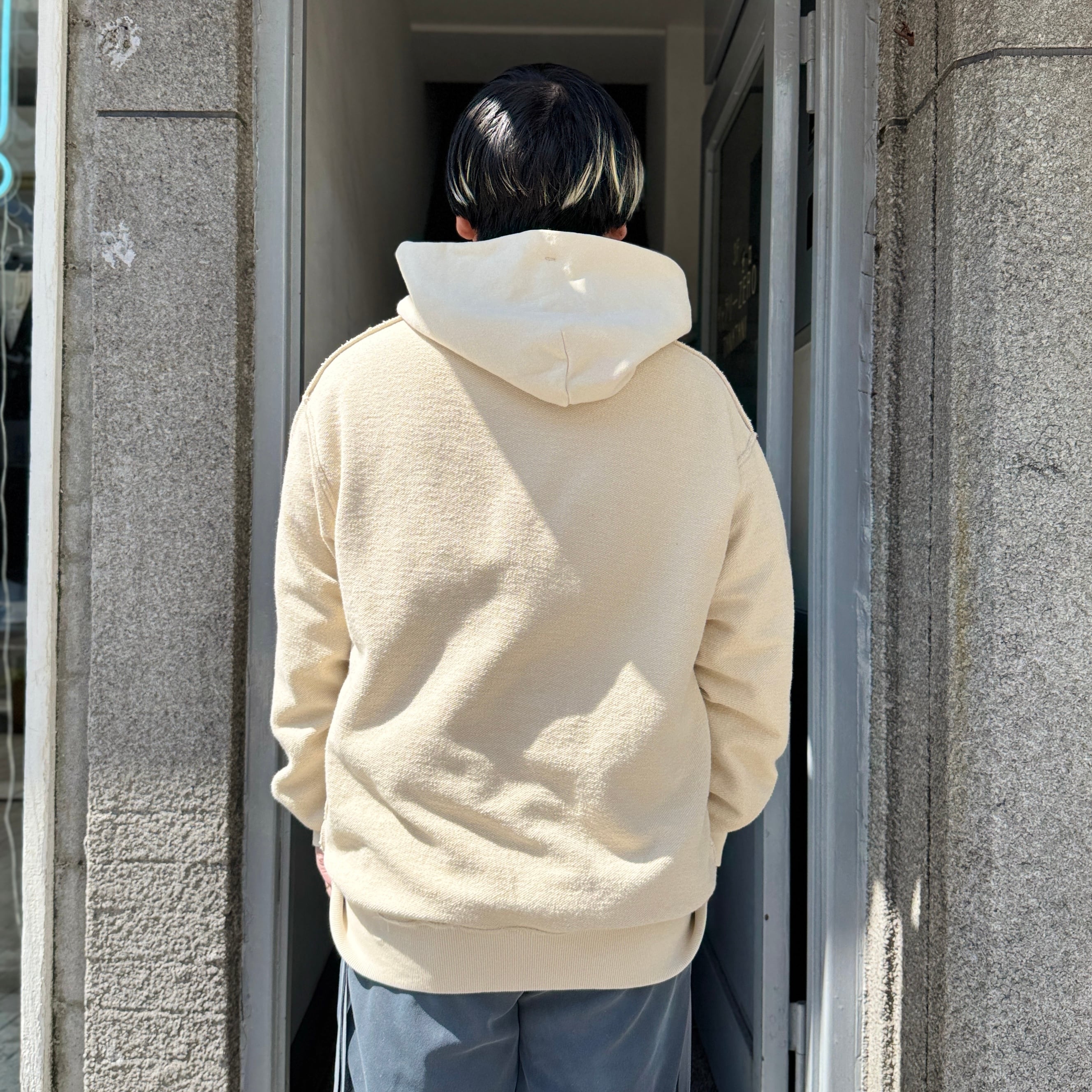 表裏を裏返したスウェットフーディー