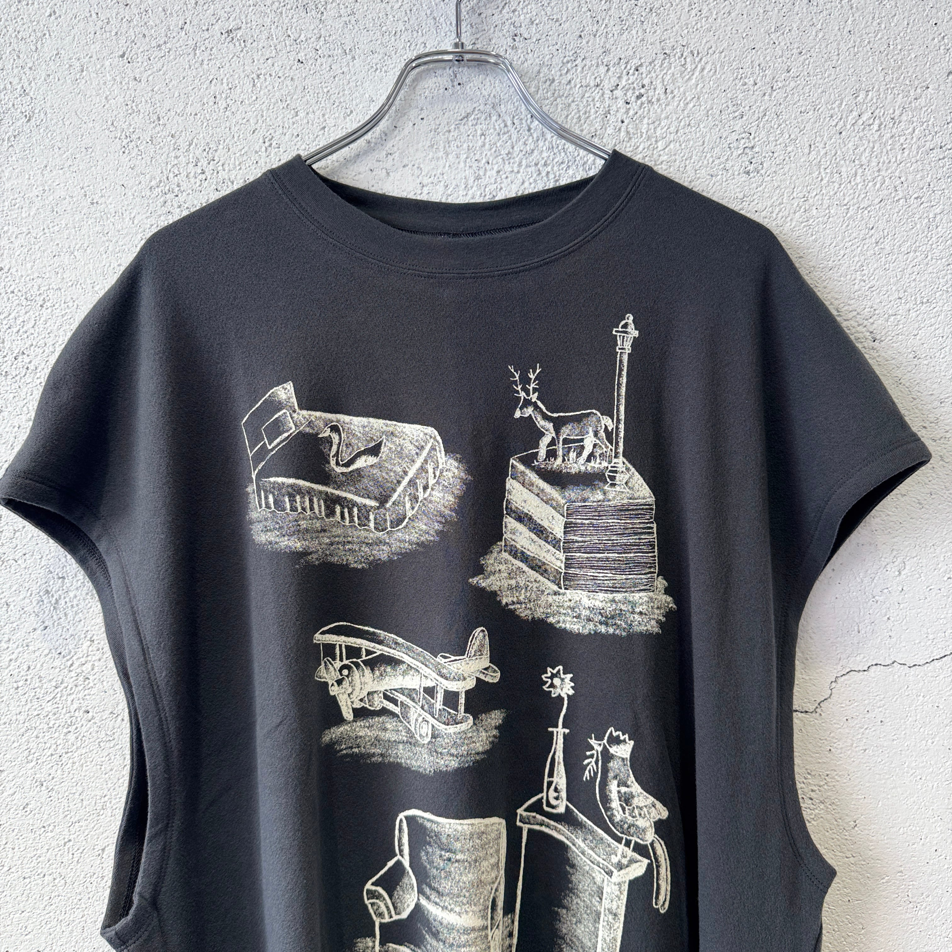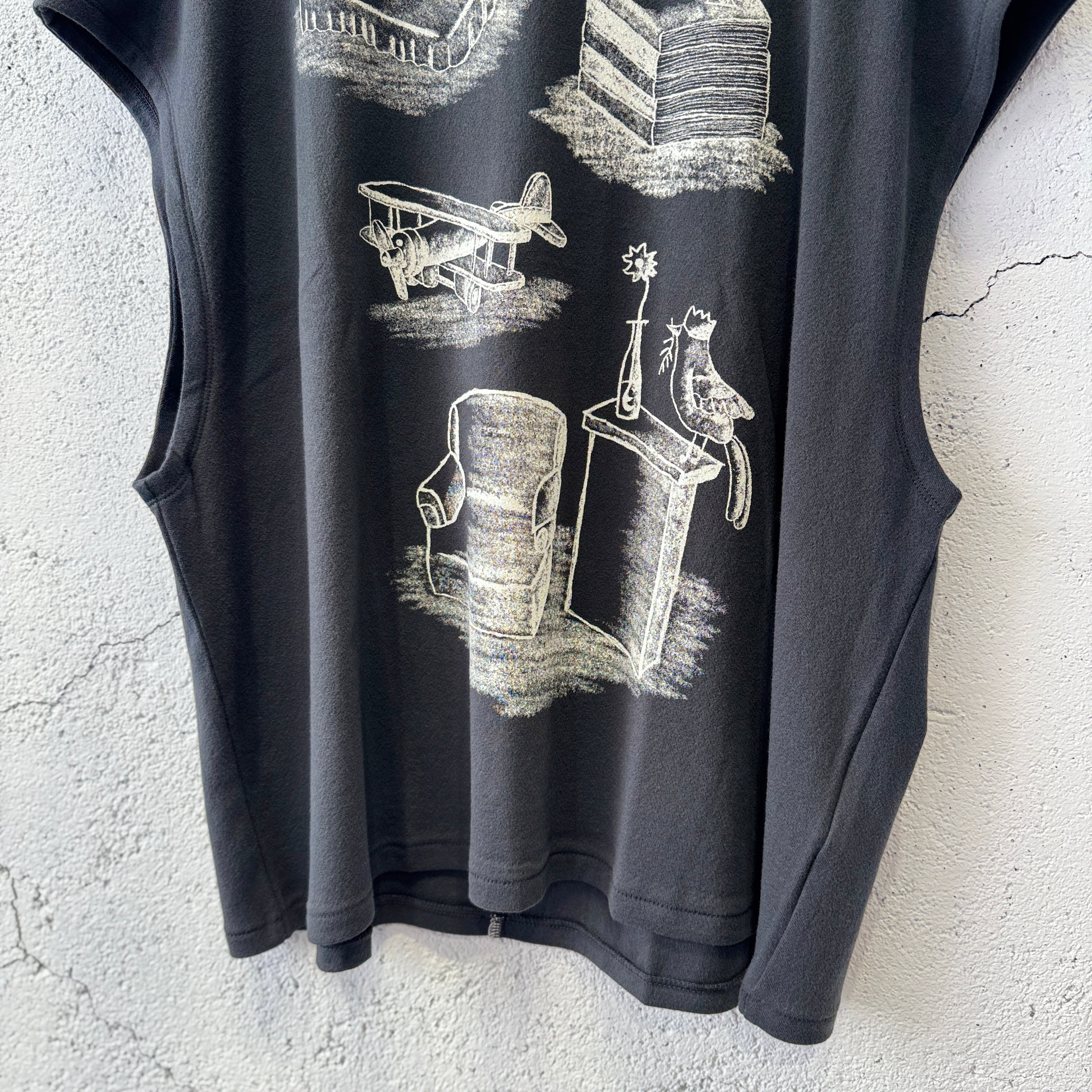 デザイナーによる手描きの絵をプリントしたオーバーサイズのノースリーブTシャツ