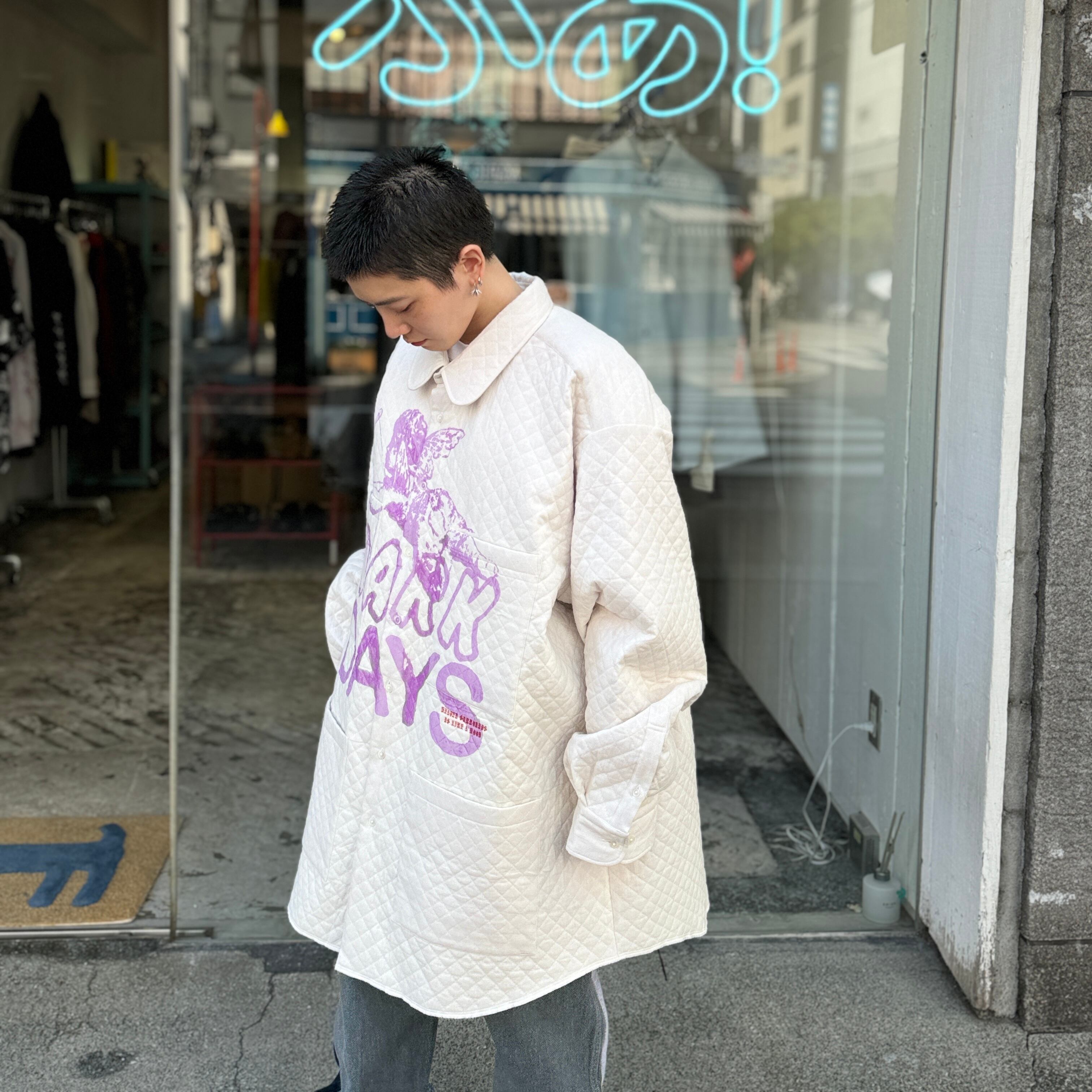 男女問わずゆったりと、アウターとしても着ていただけます。