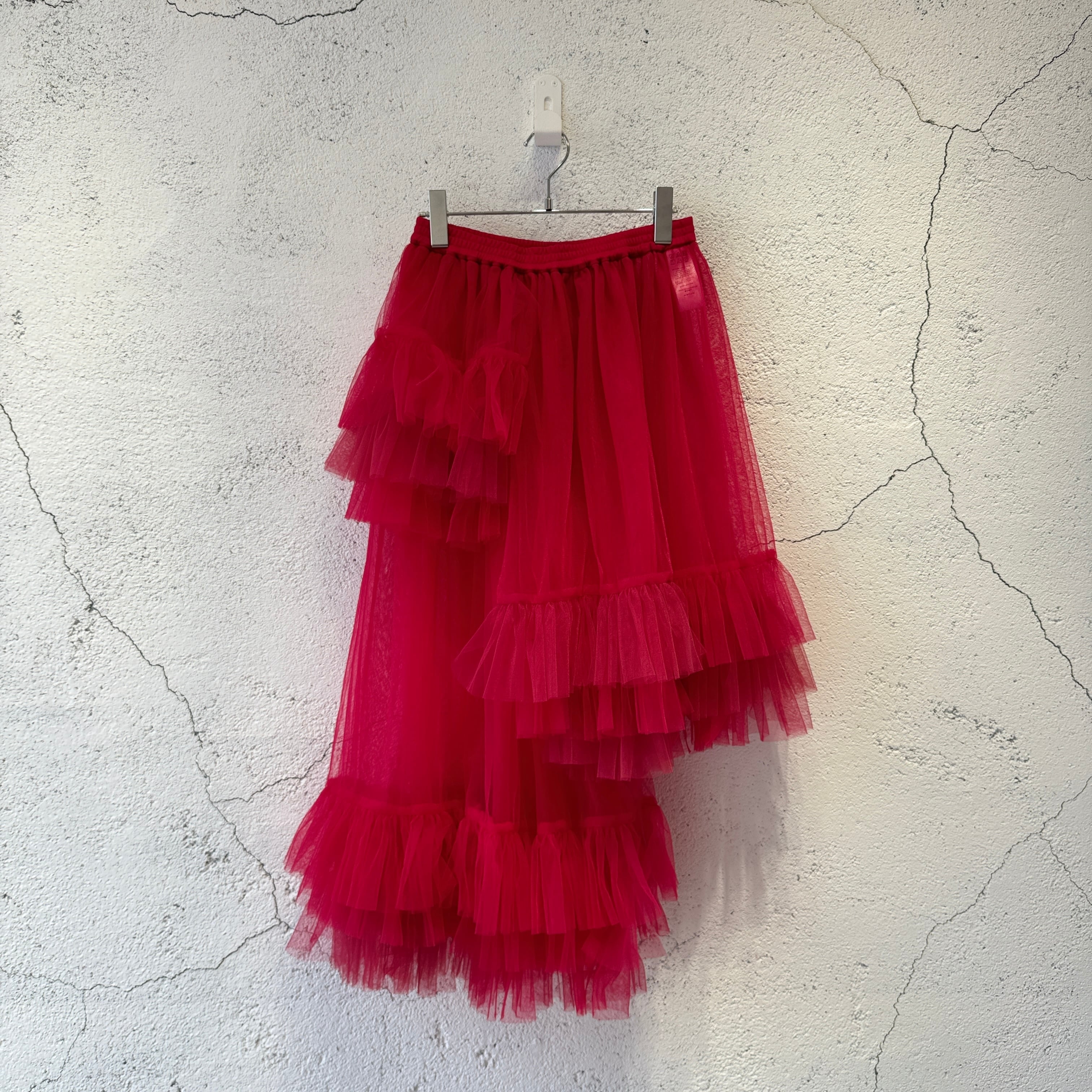 VIVIANO / Asymmetric Tulle Skirt / RED