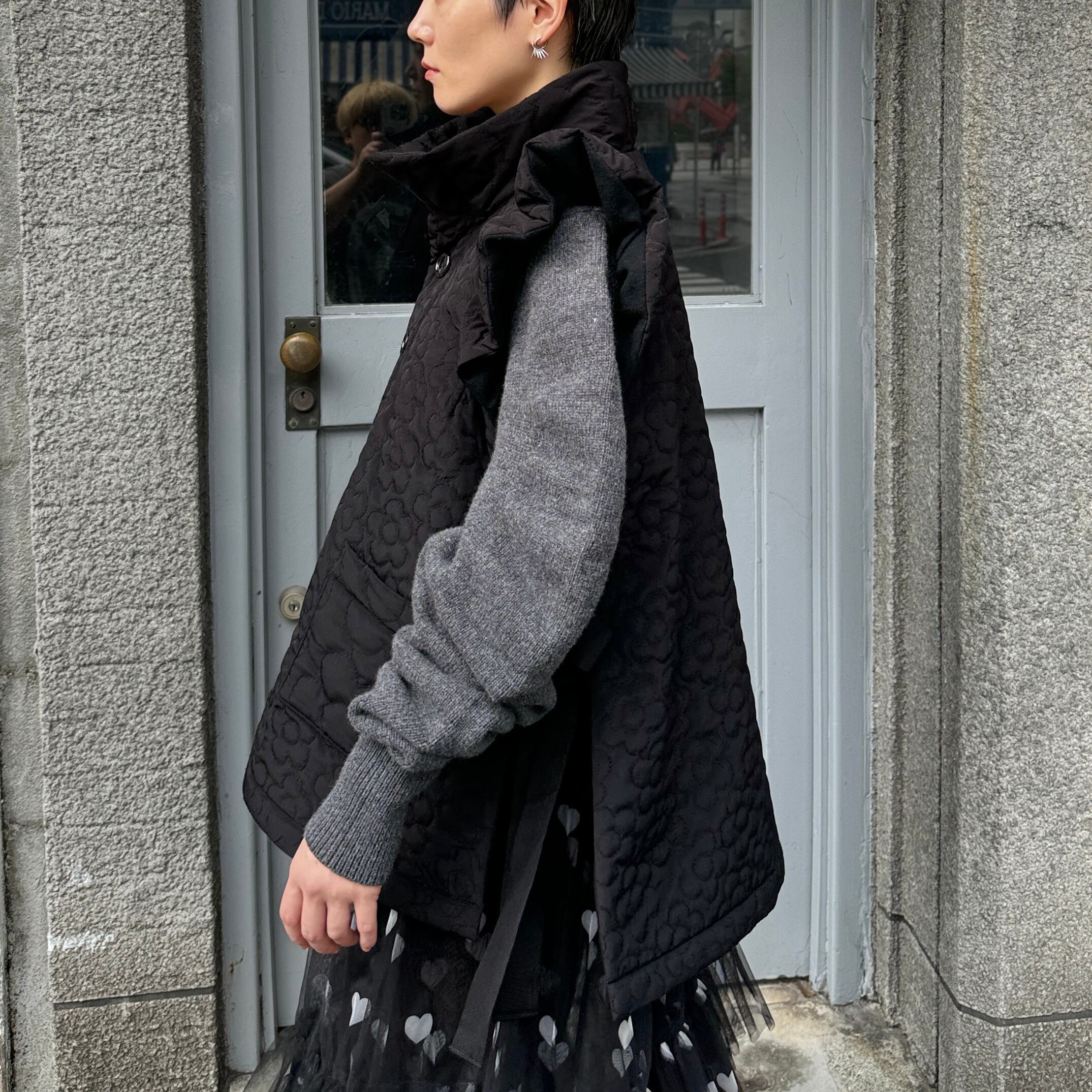 naokitomizuka / frill gilet / Quilting flower pattern / black