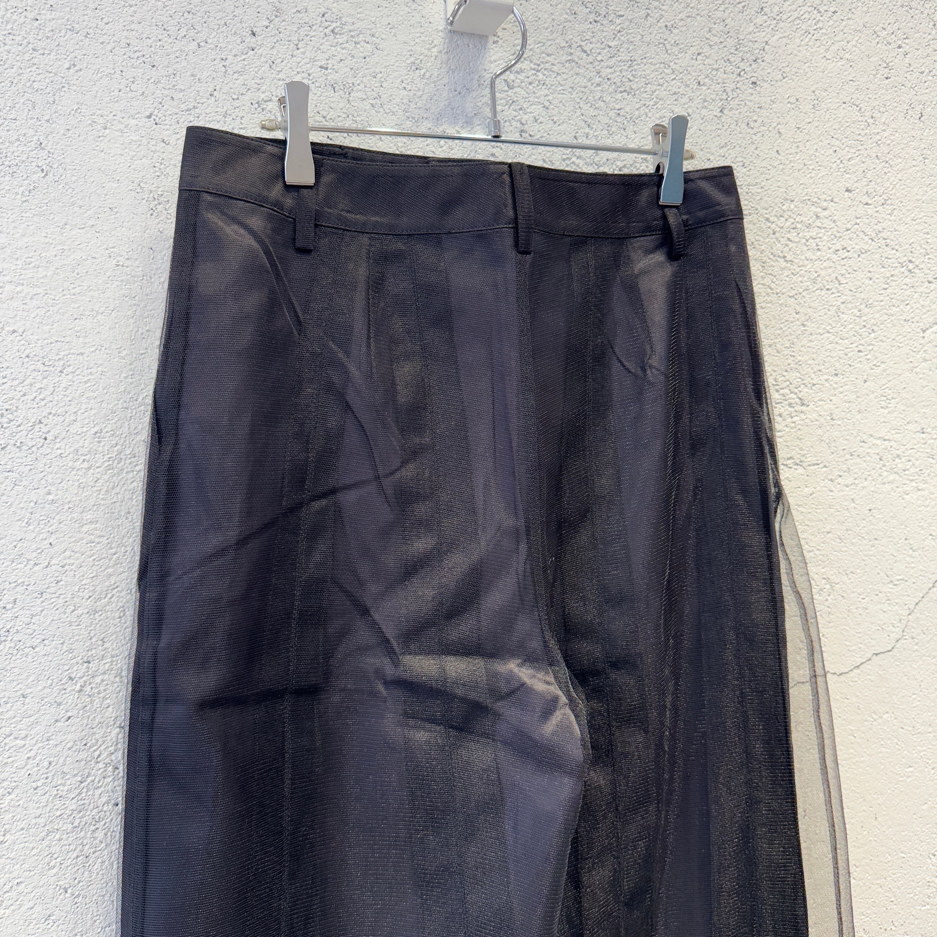 VIVIANO MENS / Tulle Irregular Pleated Trousers / BLACK