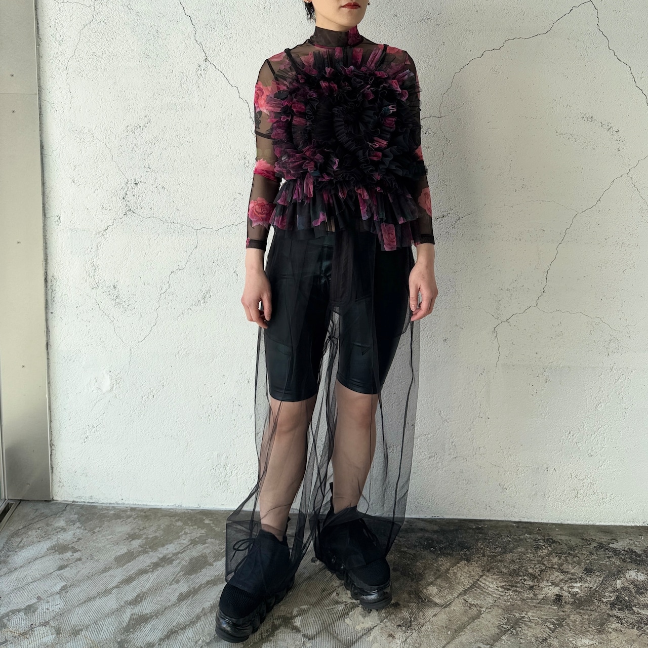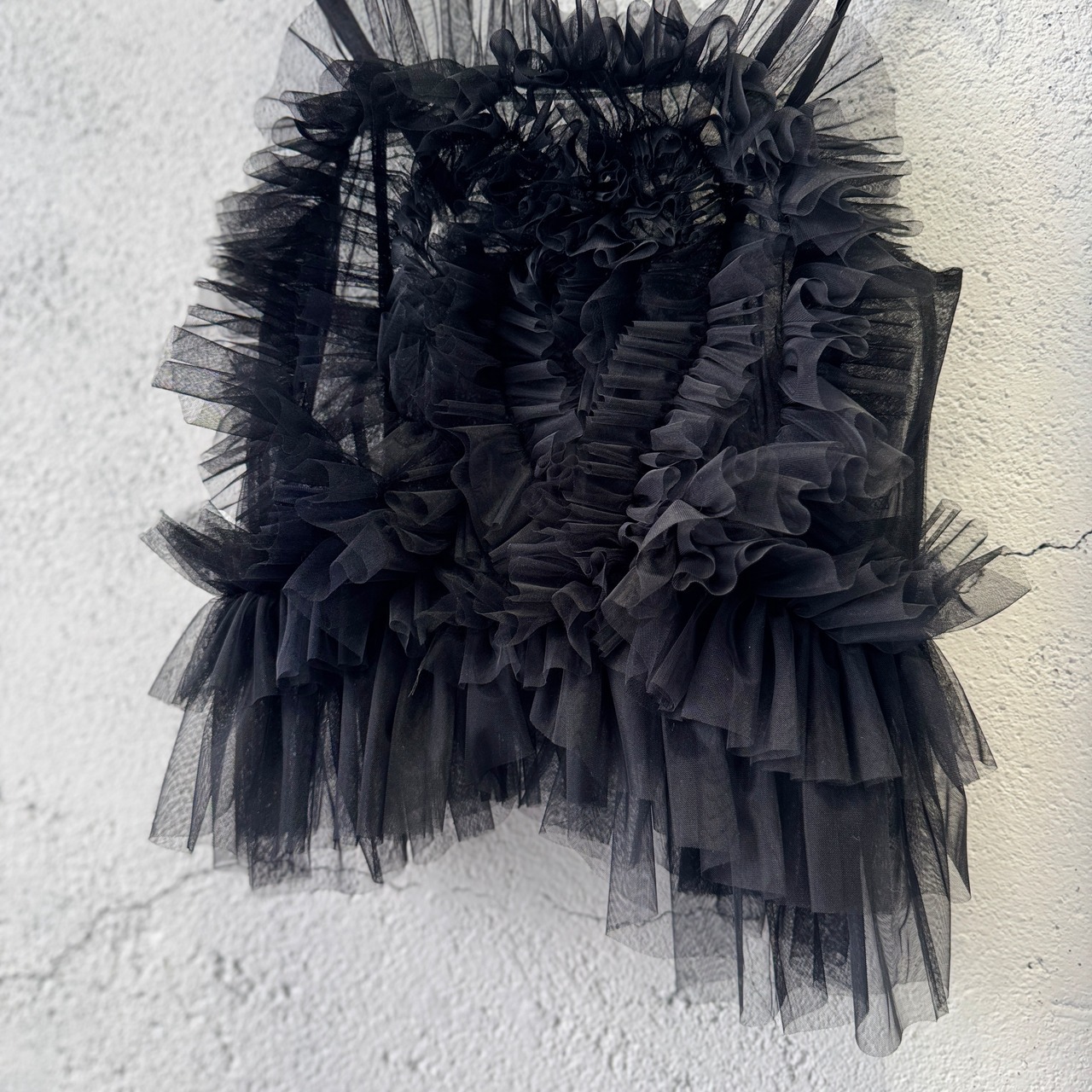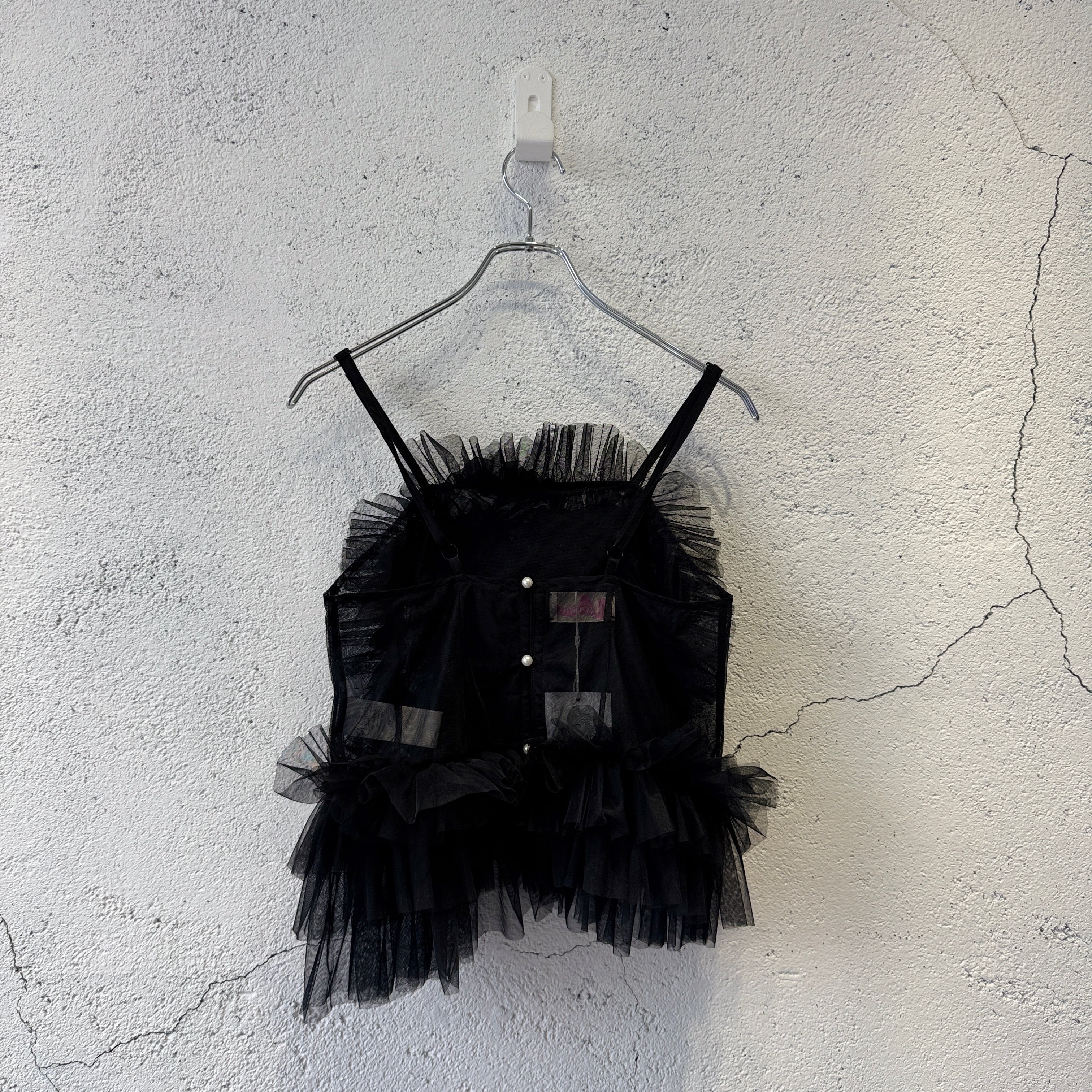 VIVIANO / Tulle Ruffle Cami Top / BLACK